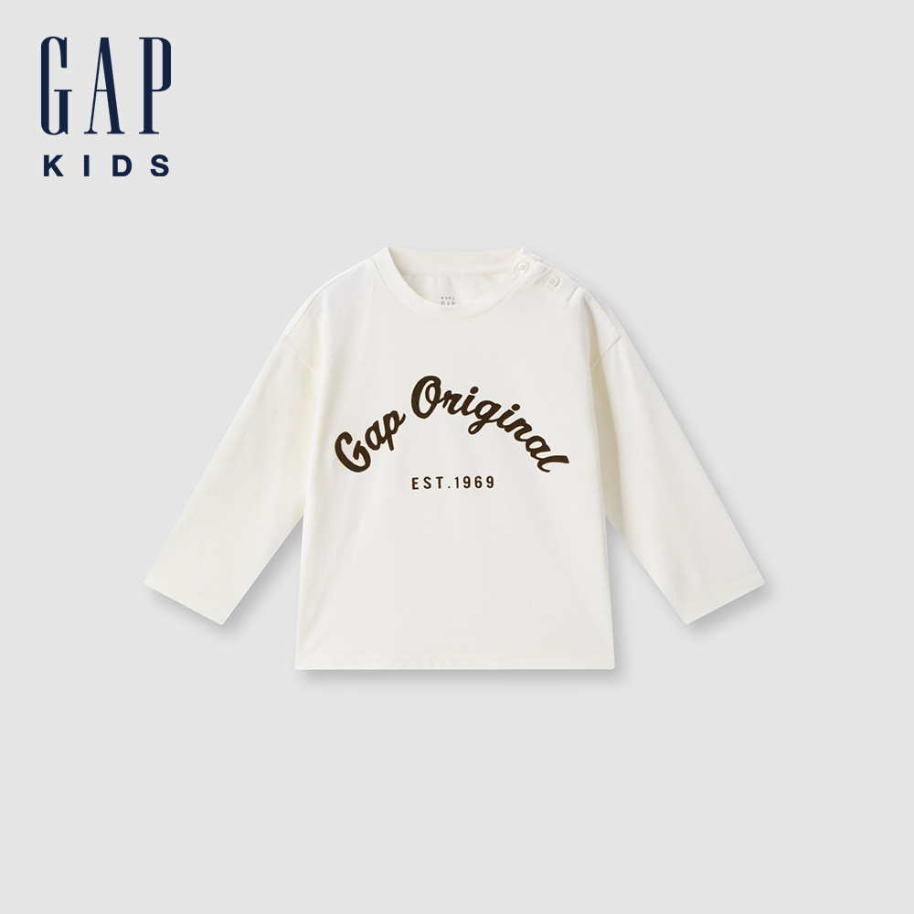 Gap 兒童裝 Logo印花圓領長袖T恤(1-14歲)-象牙白(642705)120cm(6-7歲)|130cm(8-9歲)|140cm(10-11歲)|150cm(12-13歲)|160cm(14歲以上)|90cm(1-2歲)|100cm(2-3歲)|110cm(4-5歲)TopsGap官方旗艦店