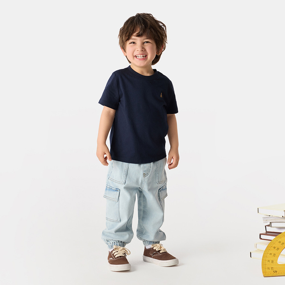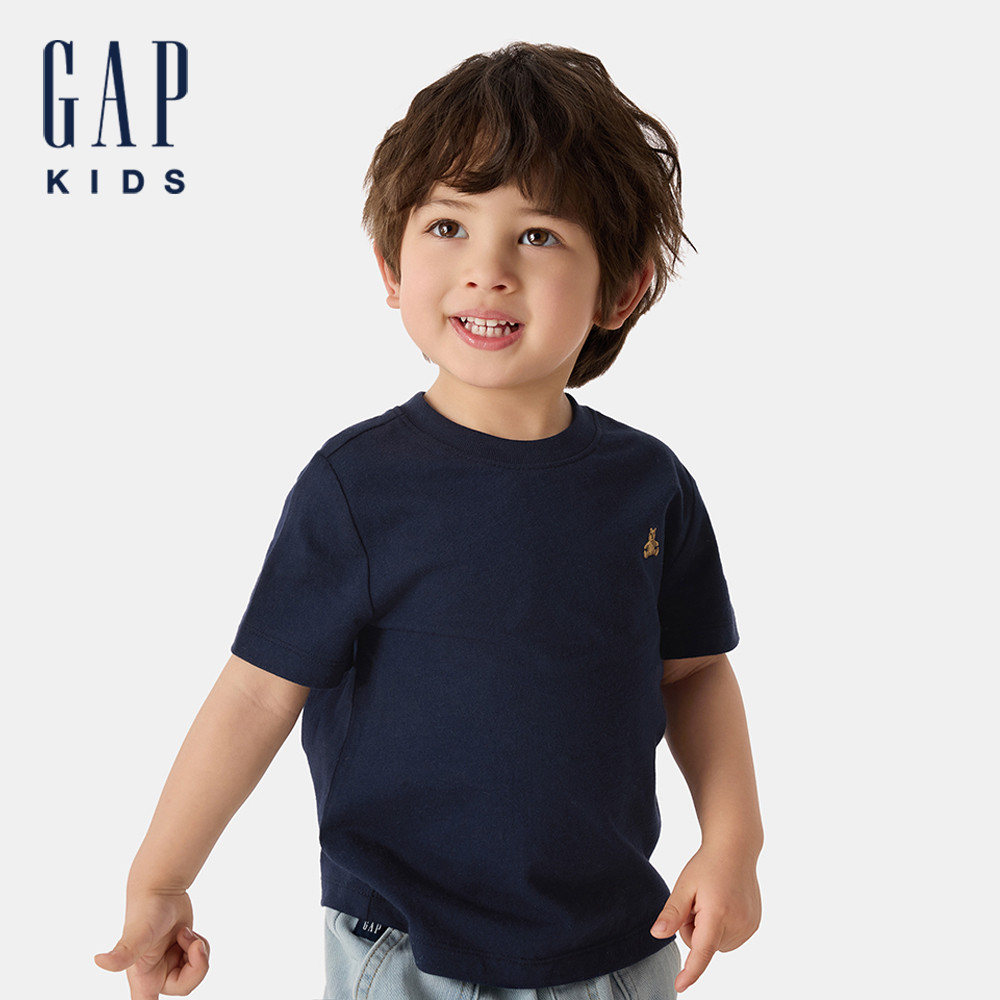 Gap 男幼童裝 純棉小熊刺繡圓領短袖T恤-海軍藍(707178)110cm(5歲)|90cm(1-2歲)|100cm(2-3歲)|110cm(4-5歲)TopsGap官方旗艦店