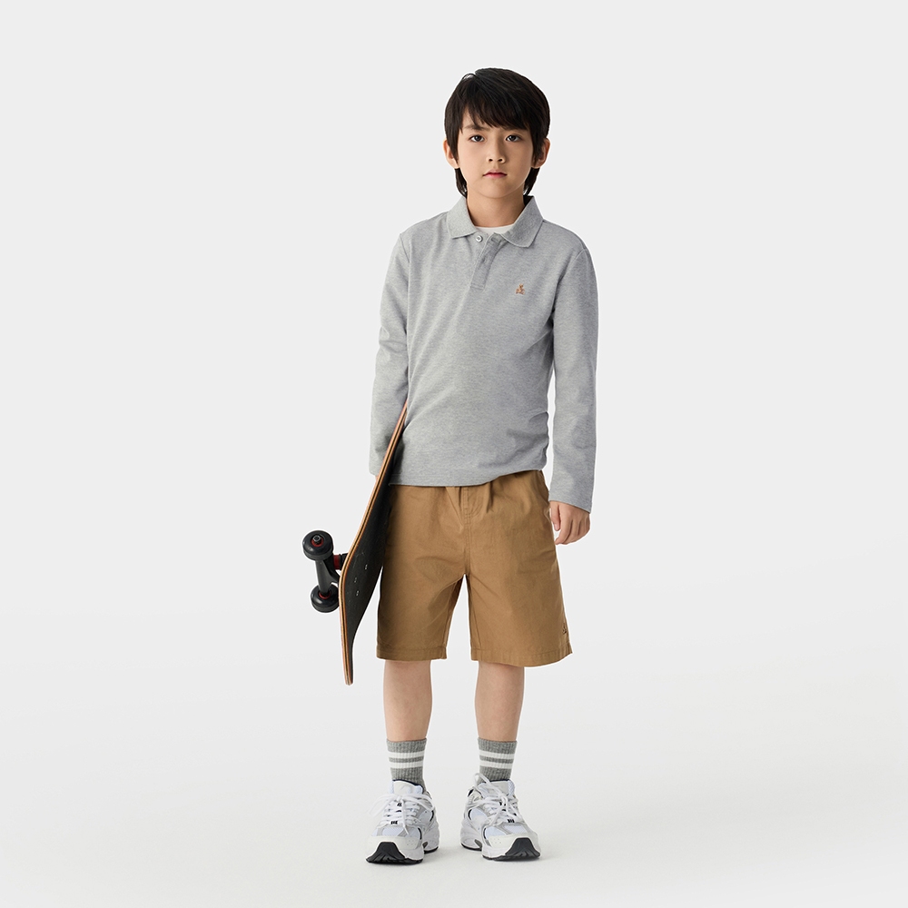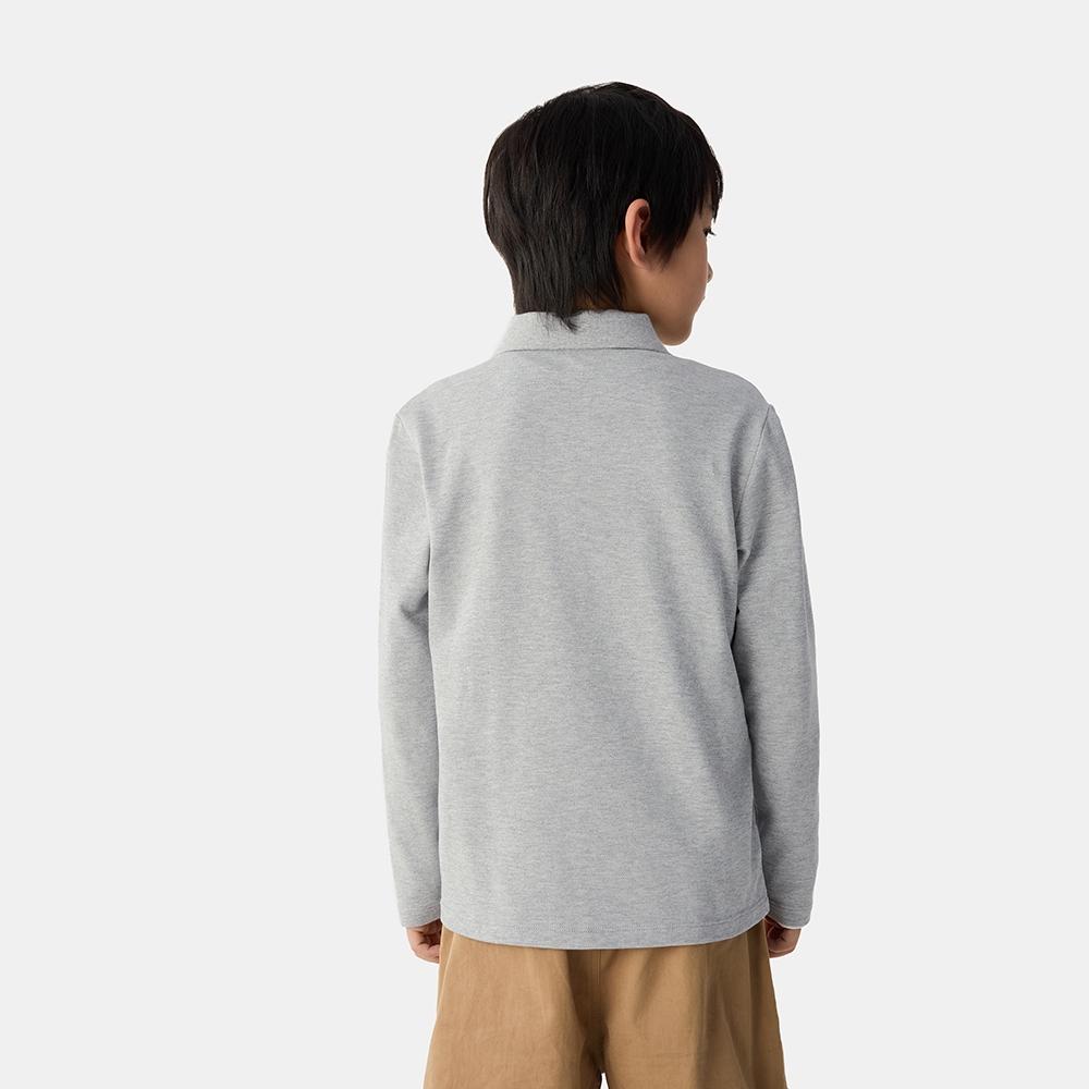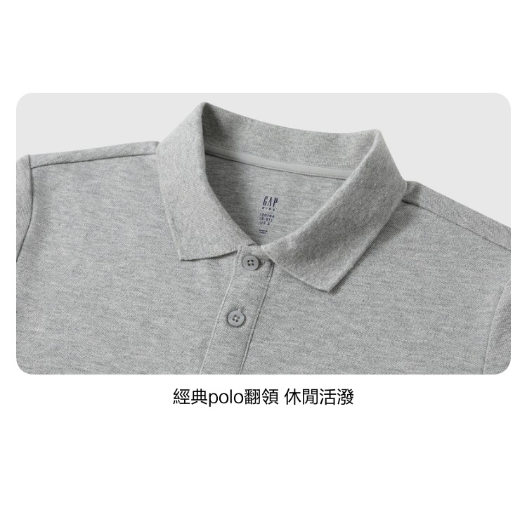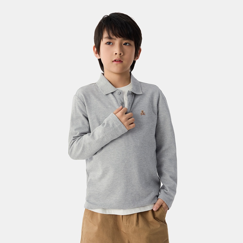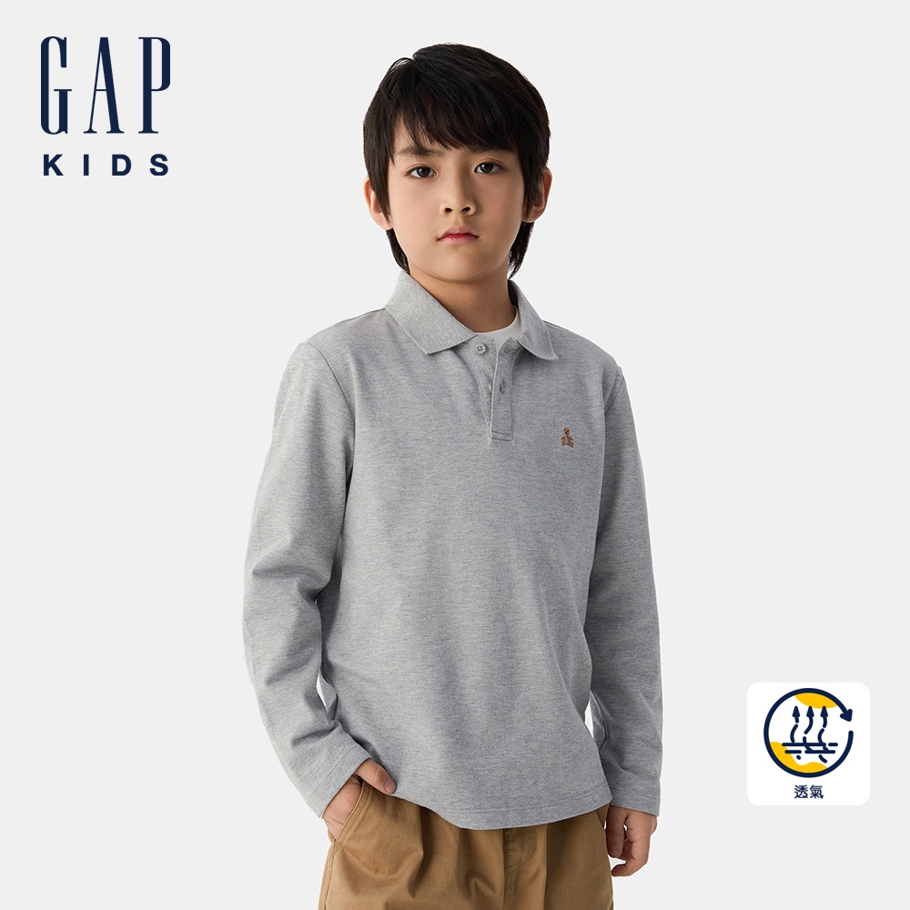 Gap 男童裝 小熊刺繡長袖POLO衫-淺灰色(687704)XXS|XS|S|M|L|XLTopsGap官方旗艦店