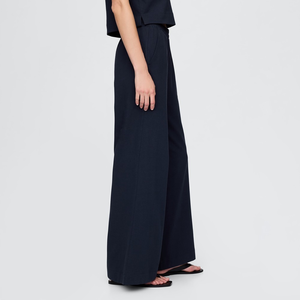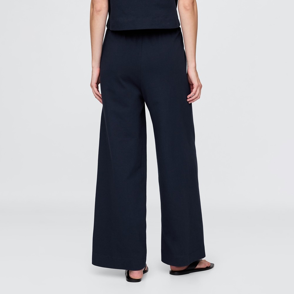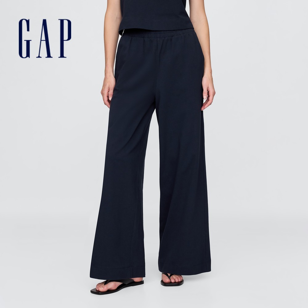 Gap 女裝 純棉鬆緊休閒寬褲-海軍藍(741653)L|XXS|XS|S|MBottomsGap官方旗艦店