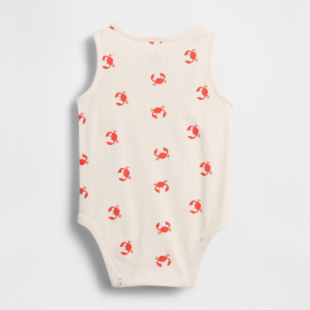 Gap 嬰兒裝 小熊刺繡印花圓領無袖包屁衣-象牙白(781032)
