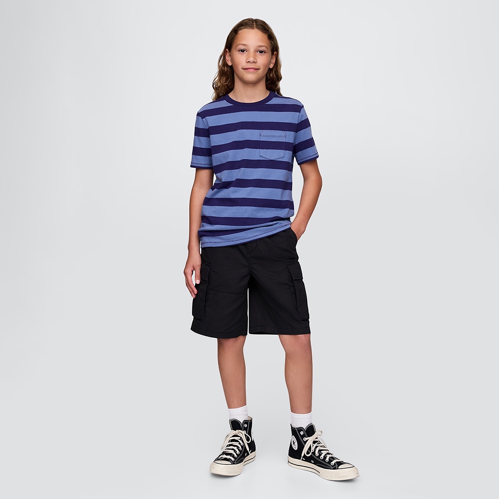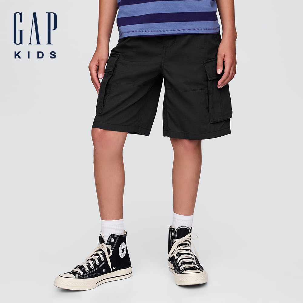 Gap 男童裝 純棉抽繩鬆緊工裝短褲-黑色(736551)XXL|XS|S|M|L|XLBottomsGap官方旗艦店