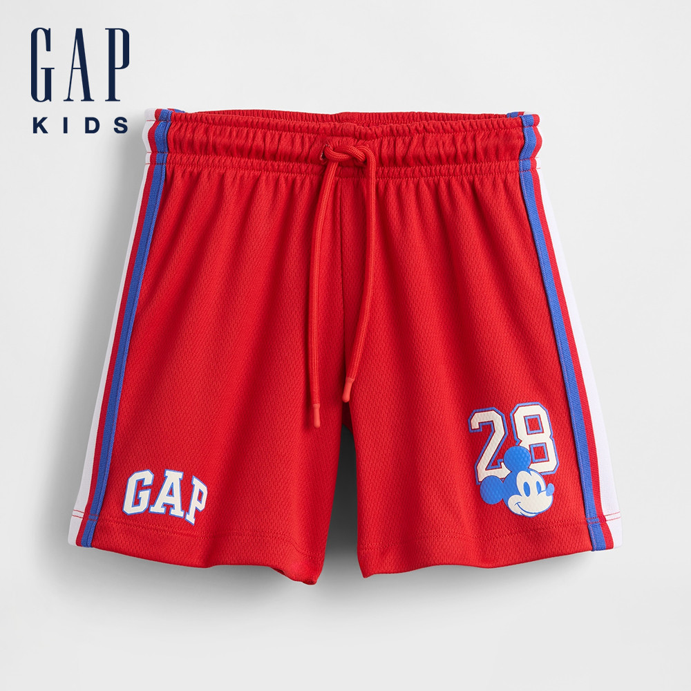 Gap 男幼童裝 Gap x Disney迪士尼聯名 Logo印花抽繩鬆緊短褲-紅色(779658)110cm(4-5歲)|110cm(5歲)|90cm(1-2歲)|100cm(2-3歲)BottomsGap官方旗艦店