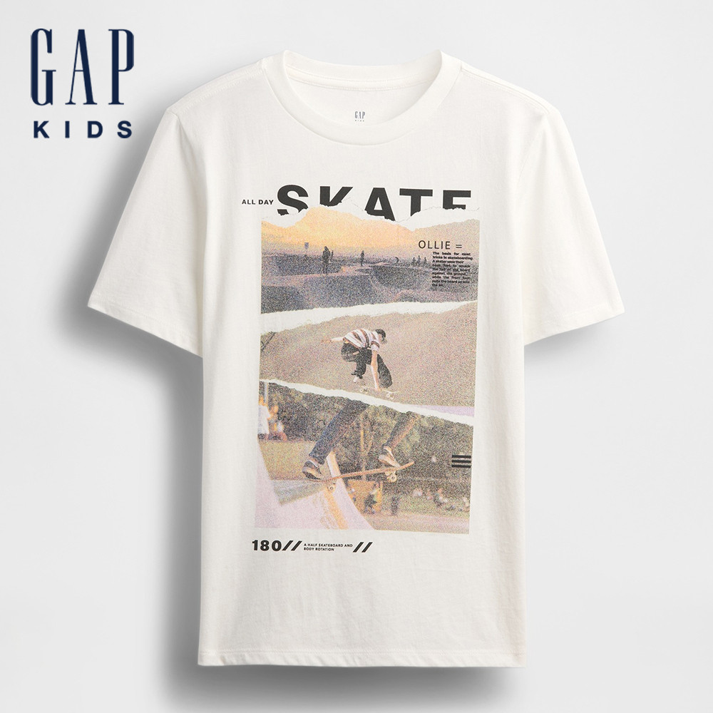Gap 男童裝 純棉印花圓領短袖T恤-白色滑板(780207)L|XL|XXL|XS|S|MTopsGap官方旗艦店