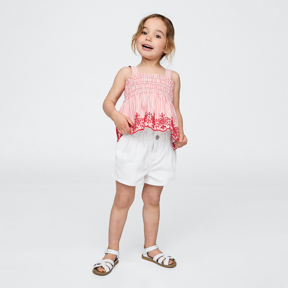 Gap 女幼童裝 鬆緊牛仔短褲-白色(778434)90cm(1-2歲)|100cm(2-3歲)|110cm(4-5歲)|110cm(5歲)BottomsGap官方旗艦店