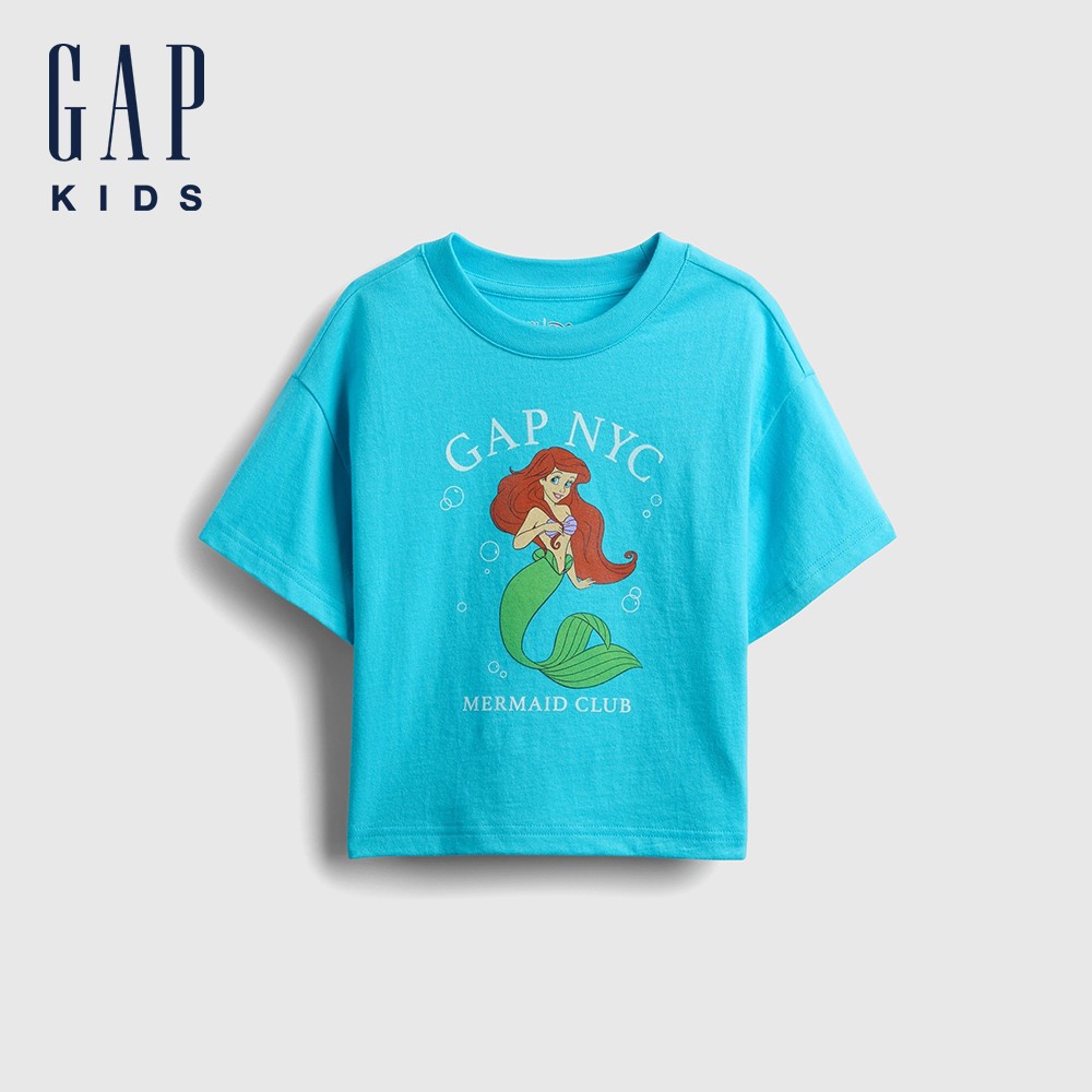 Gap 女幼童裝 Gap x Disney迪士尼聯名 Logo純棉印花圓領短袖T恤-藍色(778400)110cm(5歲)|90cm(1-2歲)|100cm(2-3歲)|110cm(4-5歲)TopsGap官方旗艦店