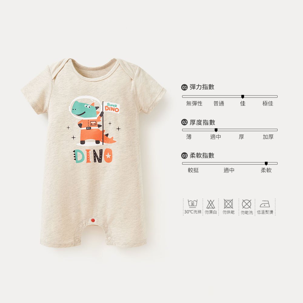 【Mamaway媽媽餵】BABY Q彈連身包屁衣-太空恐龍米色,70|米色,80|米色,90Bodysuits & JumpsuitsMamaway 媽媽餵 母嬰品牌領導者