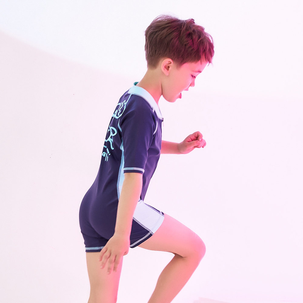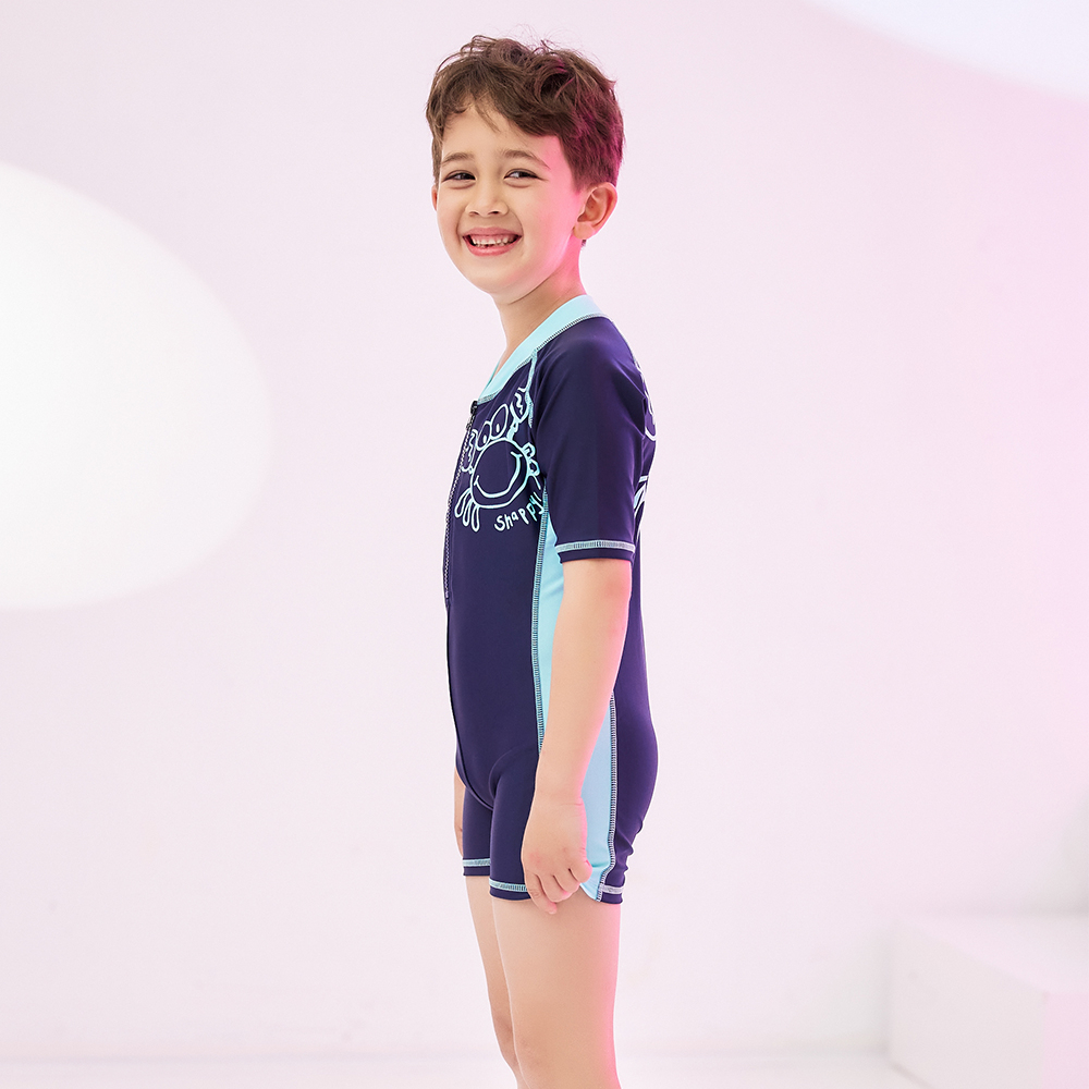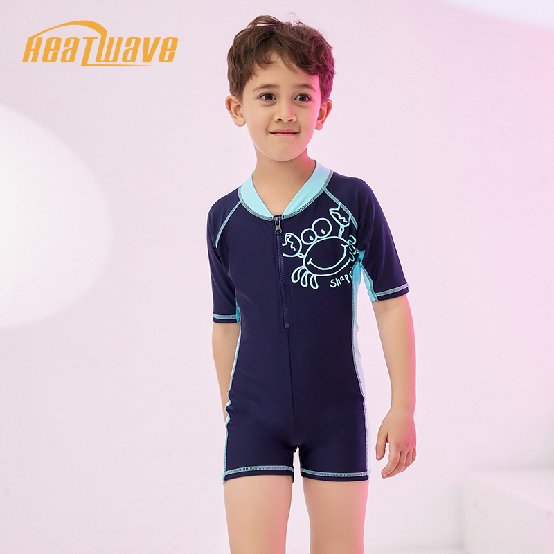 Heatwave熱浪 連身短袖兒童泳衣男童中大童螃蟹卡通男孩游泳衣藍色,110(M)|藍色,120( L)|藍色,130(XL)|藍色,140(2XL)SwimwearHeatwave熱浪泳衣官方旗艦店