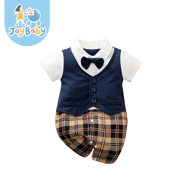 JOYBABY 包屁衣 嬰兒純棉短袖裝 連身衣 童裝 藏青紳士款
