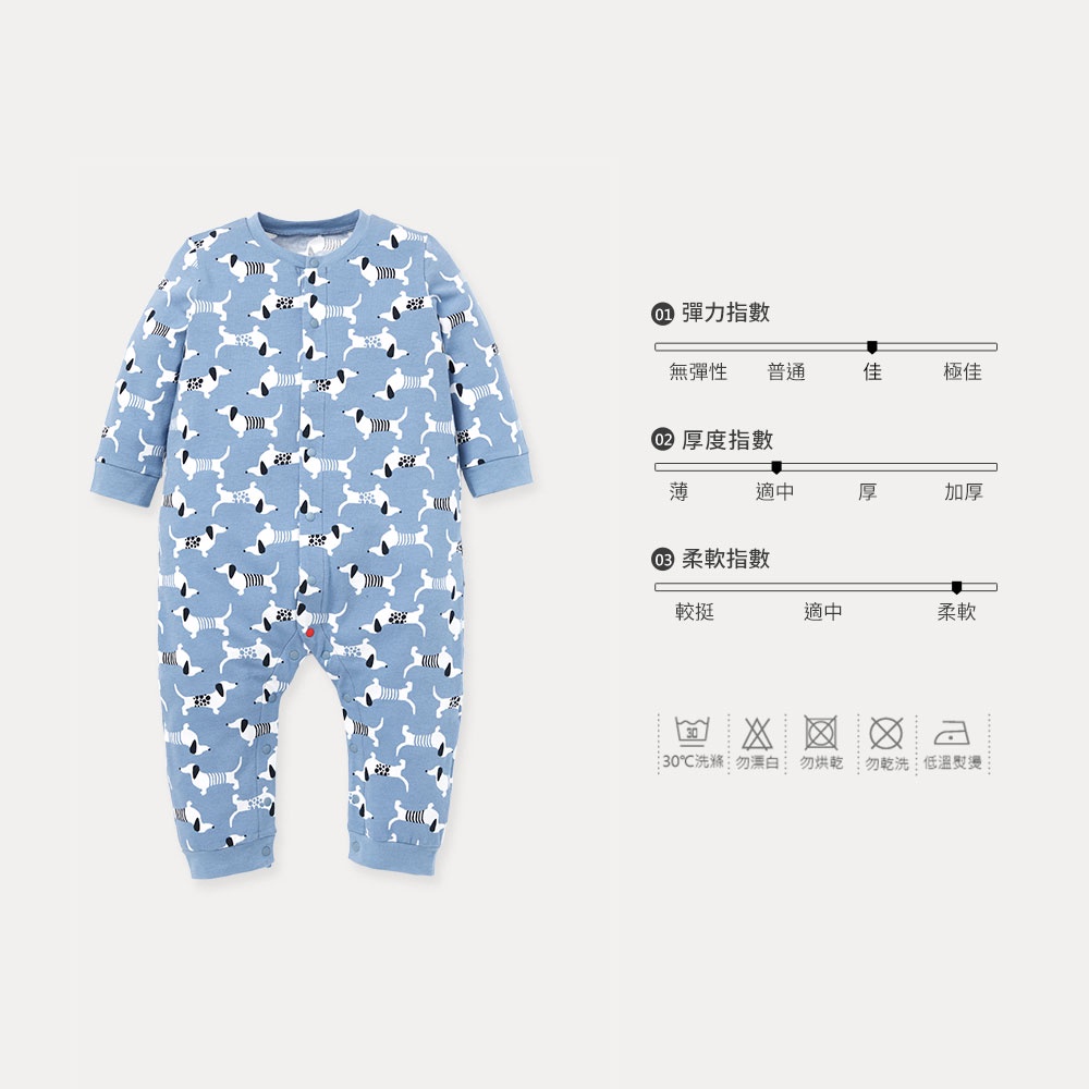 【Mamaway媽媽餵】BABY長袖連身衣-狗狗藍色,70|藍色,80|藍色,90Bodysuits & JumpsuitsMamaway 媽媽餵 母嬰品牌領導者
