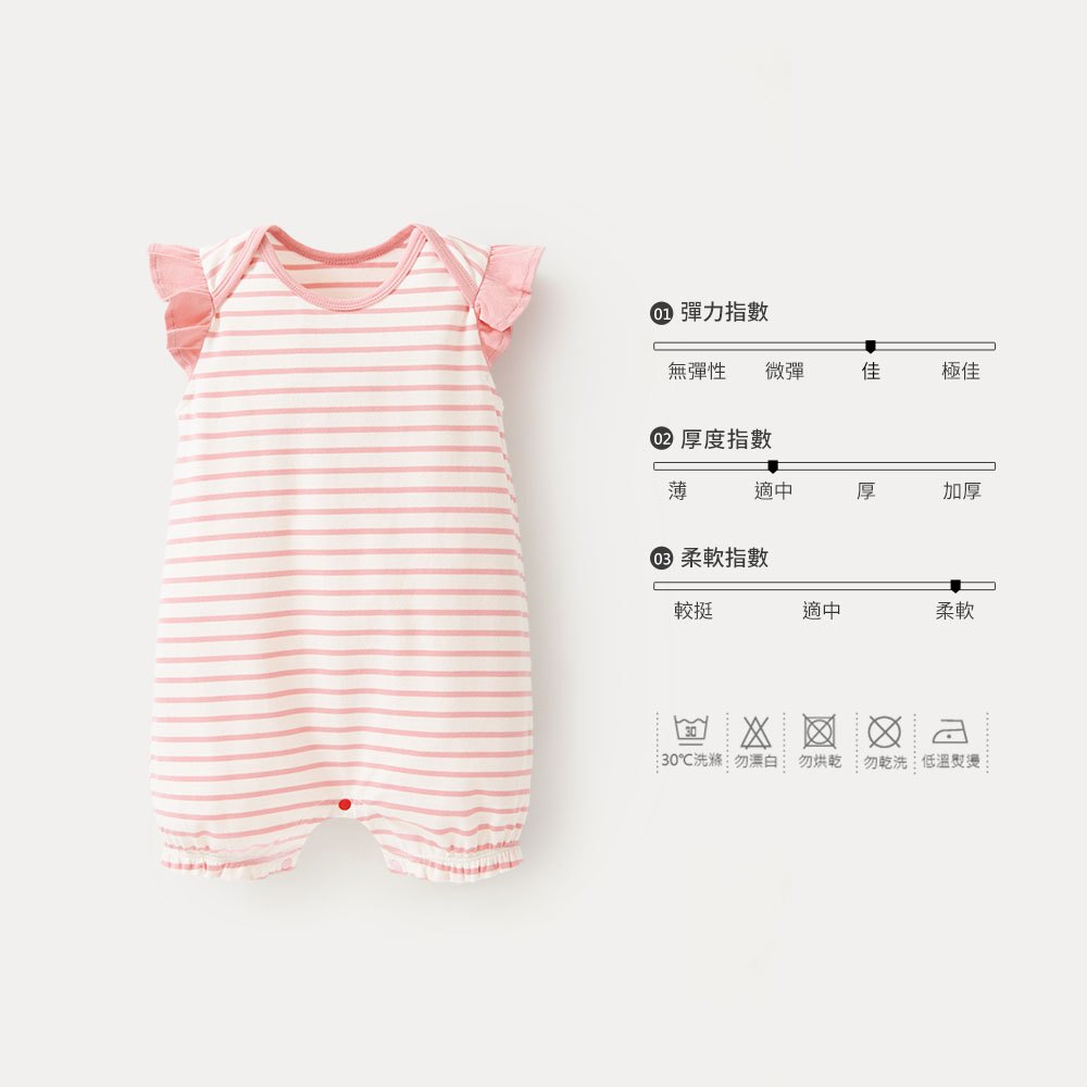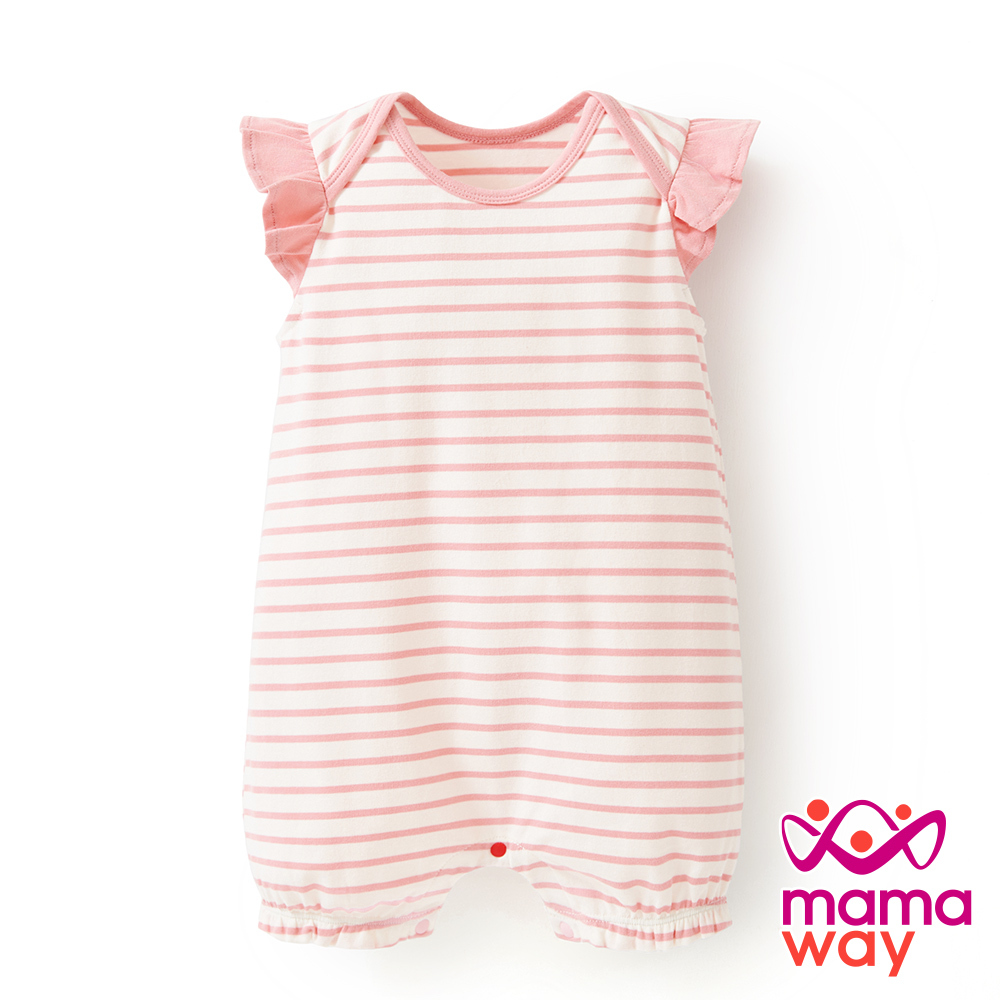【Mamaway媽媽餵】BABY Q彈荷葉橫紋連身包屁衣淺粉,70|淺粉,80|淺粉,90Bodysuits & JumpsuitsMamaway 媽媽餵 母嬰品牌領導者