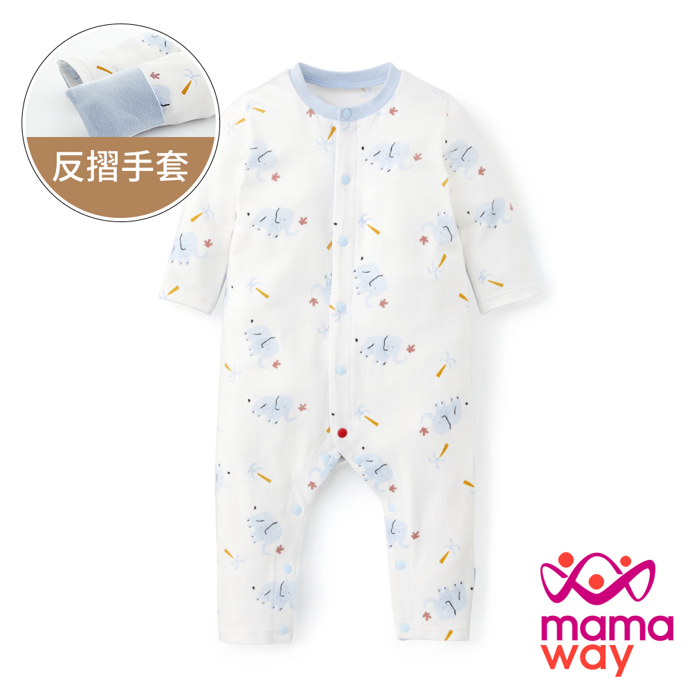 【Mamaway媽媽餵】新生兒長袖連身衣-大象淺藍,NBBodysuits & JumpsuitsMamaway 媽媽餵 母嬰品牌領導者