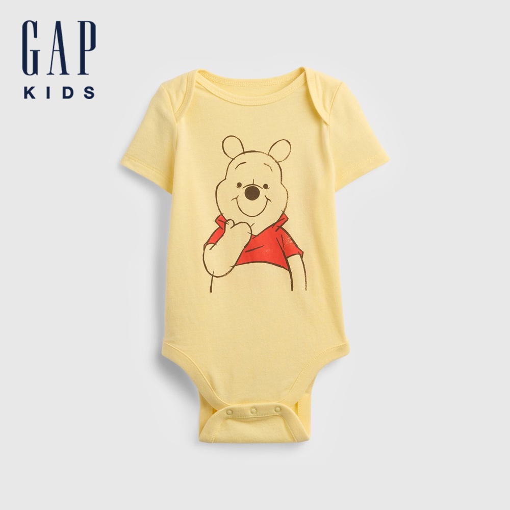 Gap 嬰兒裝 Gap x Disney迪士尼聯名 純棉印花圓領短袖包屁衣-淡黃色(767392)59cm(3-6月)|73cm(6-12月)|80cm(12-18月)|90cm(18-24月)|52cm(0-3月)Bodysuits & JumpsuitsGap官方旗艦店