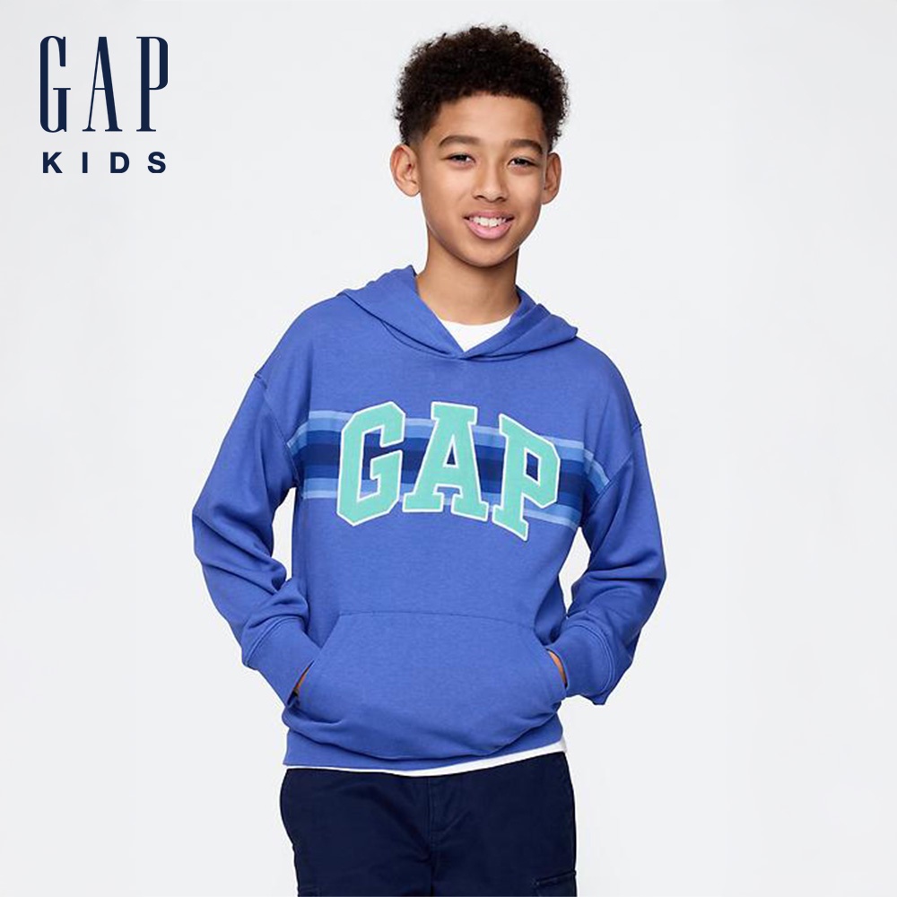 Gap 男童裝 Logo刺繡帽T-藍色(743971)XL|XXL|XS|S|M|LOuterwearGap官方旗艦店