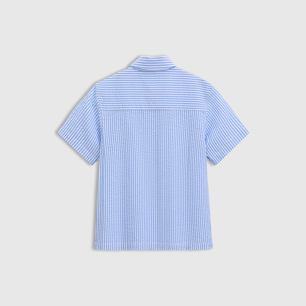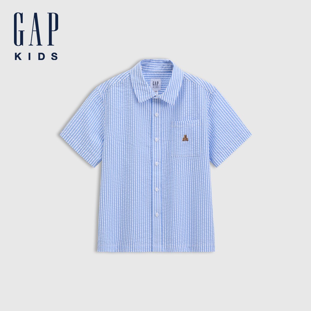 Gap 男童裝 純棉小熊刺繡翻領短袖襯衫 布萊納系列-藍色條紋(767213)L|XL|XXS|XS|S|MTopsGap官方旗艦店