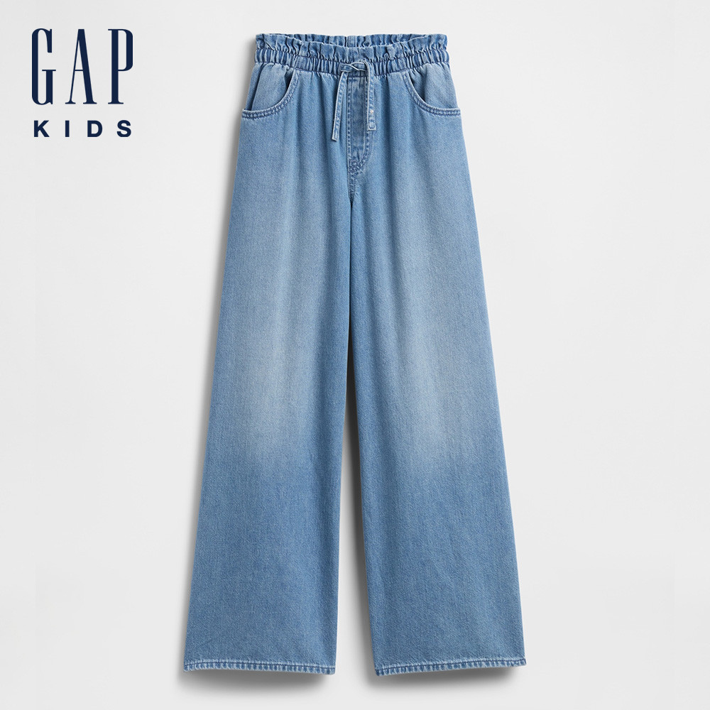 Gap 女童裝 抽繩鬆緊牛仔褲-中度水洗(782442)S|M|L|XL|XXL|XSBottomsGap官方旗艦店