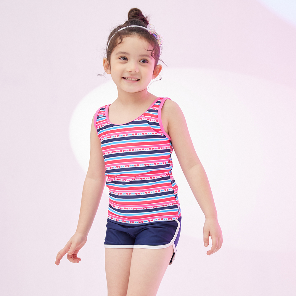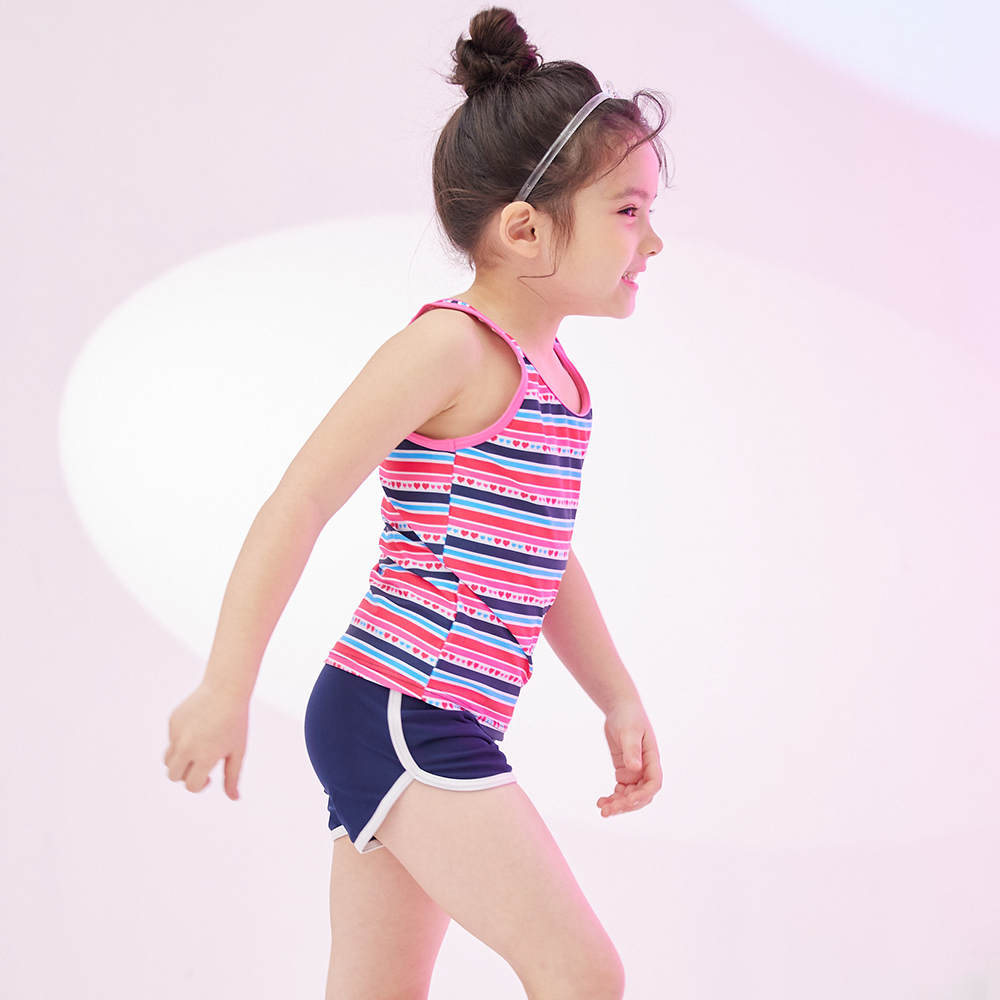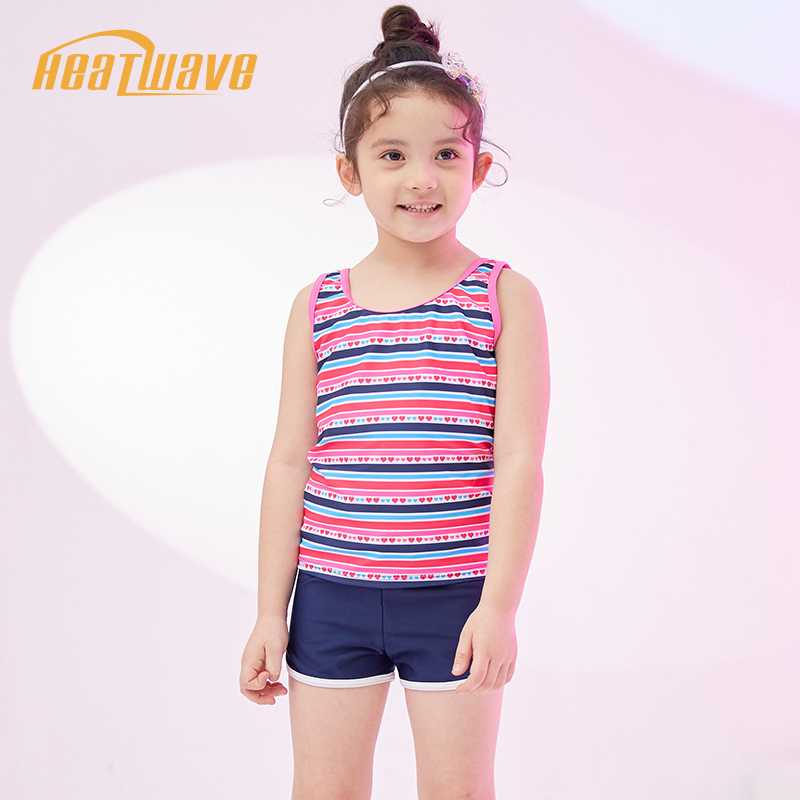 Heatwave熱浪背心款二件式女兒童泳衣中大童保守兩截式游泳衣溫泉學生運動泳裝粉色,130(XL)|粉色,140(2XL)|粉色,150(3XL)|粉色,160(4XL)SwimwearHeatwave熱浪泳衣官方旗艦店