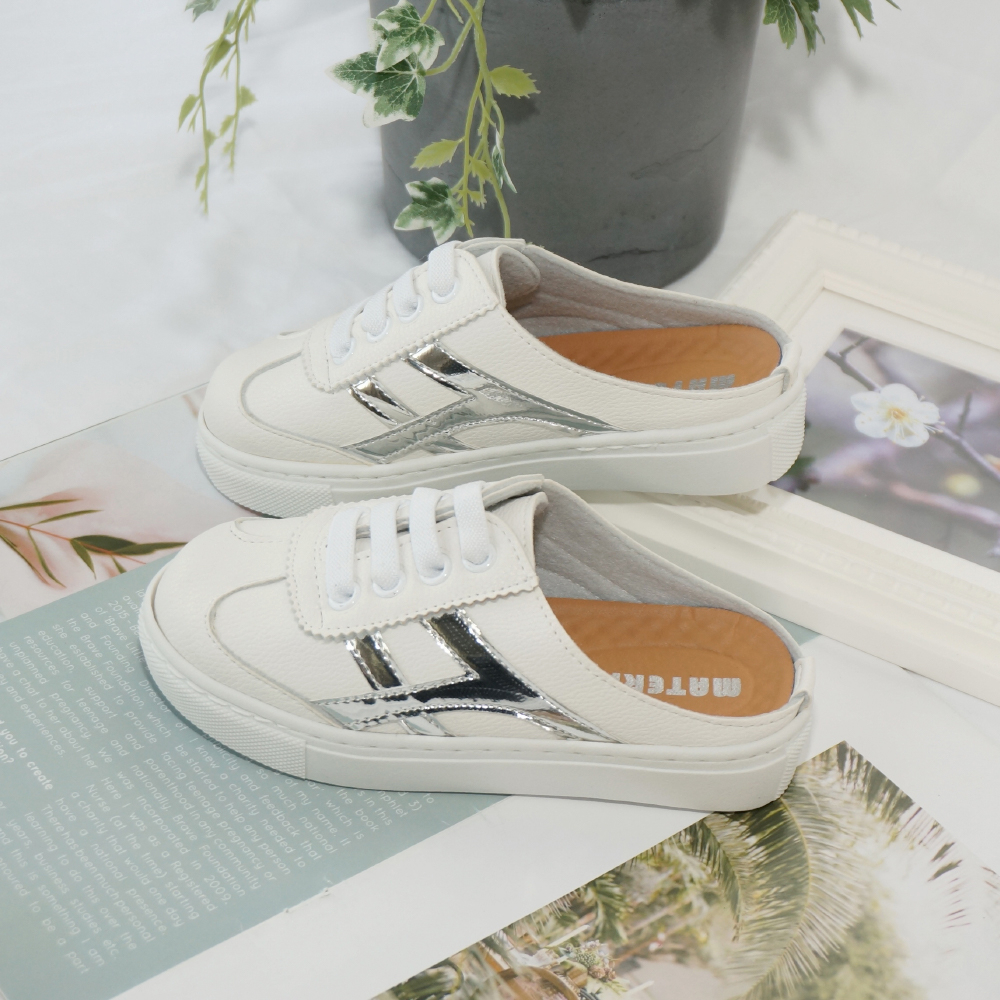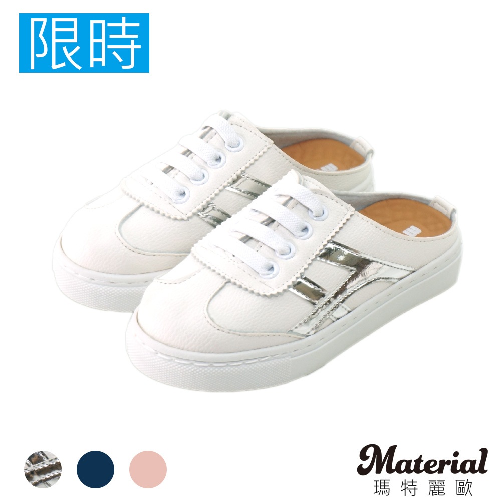 Material瑪特麗歐 TB52119 【15-22】 童鞋 MIT撞色可愛穆勒鞋藍色18|藍色19|藍色20|銀色18|銀色19|粉色18|藍色21|銀色20|銀色21|粉色19|粉色20|粉色21|粉色22|藍色22|銀色22FlatsMaterial 瑪特麗歐 台灣製女鞋品牌 旗艦店