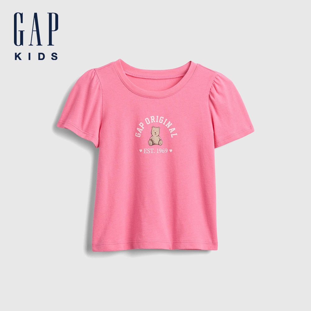 Gap 女幼童裝 Logo純棉小熊印花圓領短袖T恤-粉色(778402)90cm(1-2歲)|100cm(2-3歲)|110cm(4-5歲)|110cm(5歲)TopsGap官方旗艦店