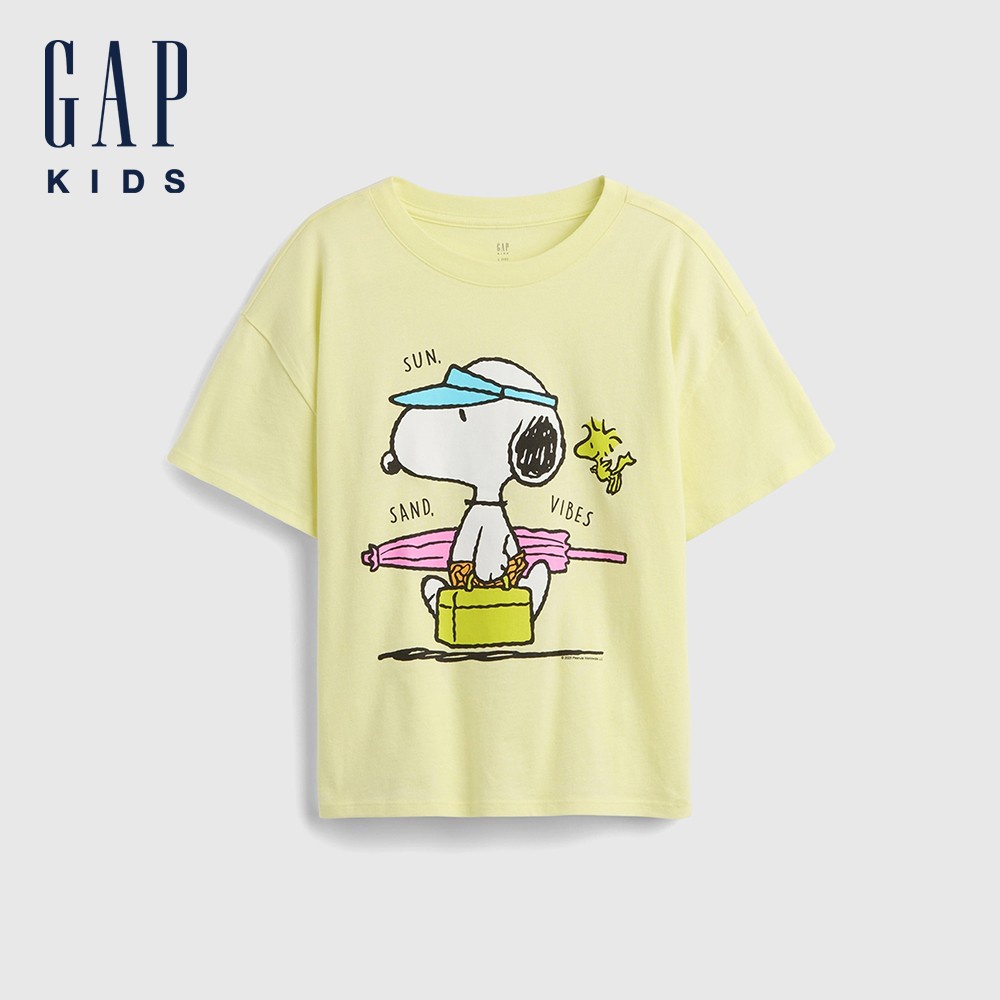 Gap 女童裝 Gap x Snoopy史努比聯名 印花圓領短袖T恤-淺黃色(781886)L|XL|XXL|XS|S|MTopsGap官方旗艦店