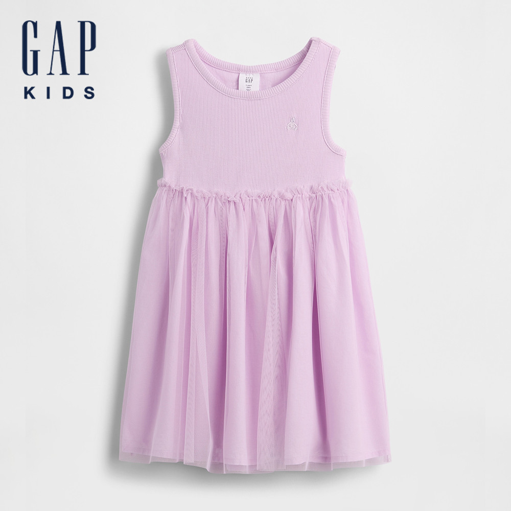 Gap 女幼童裝 純棉小熊刺繡圓領無袖紗裙洋裝-紫色(776628)110cm(4-5歲)|110cm(5歲)|90cm(1-2歲)|100cm(2-3歲)DressesGap官方旗艦店