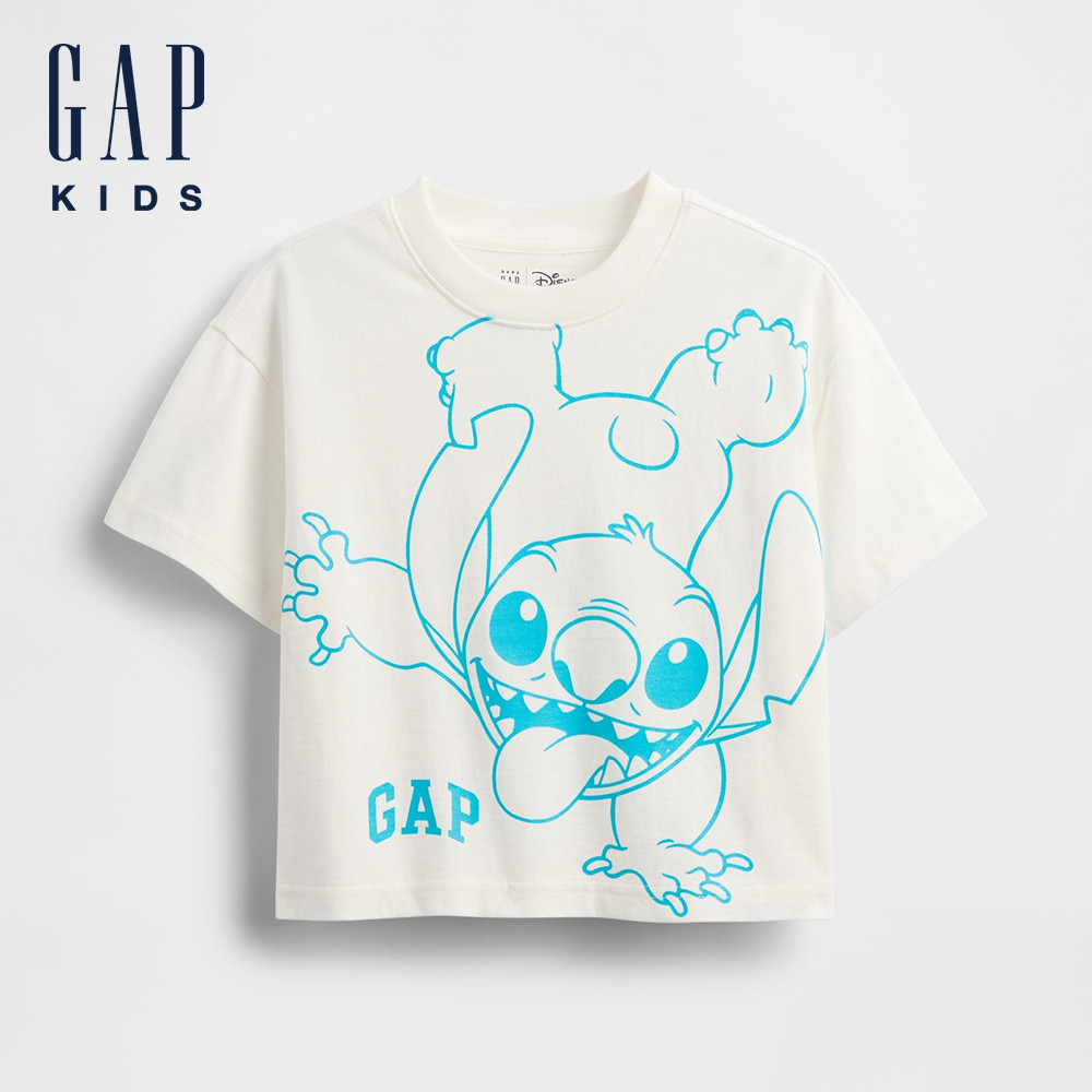 Gap 男幼童裝 Gap x Disney迪士尼聯名 Logo純棉史迪奇印花圓領短袖T恤-白色(779237)100cm(2-3歲)|110cm(4-5歲)|110cm(5歲)|90cm(1-2歲)TopsGap官方旗艦店