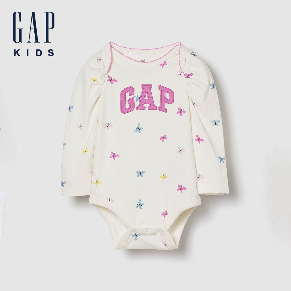 Gap 嬰兒裝 Logo刺繡/印花圓領長袖包屁衣-象牙白(816511)59cm(3-6月)|73cm(6-12月)|80cm(12-18月)|90cm(18-24月)Bodysuits & JumpsuitsGap官方旗艦店