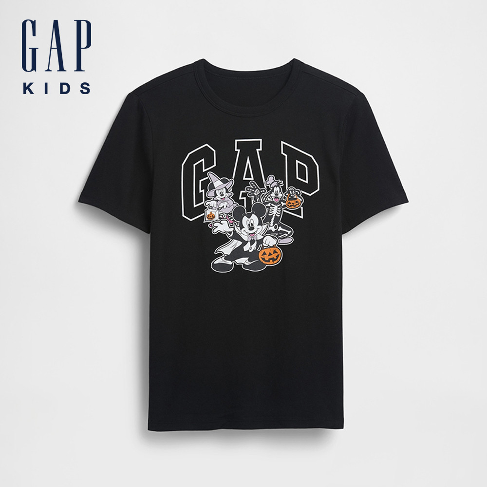 Gap 男童裝 Gap x Disney迪士尼聯名 Logo純棉印花圓領短袖T恤-黑色(822244)XS|S|M|L|XL|XXLTopsGap官方旗艦店