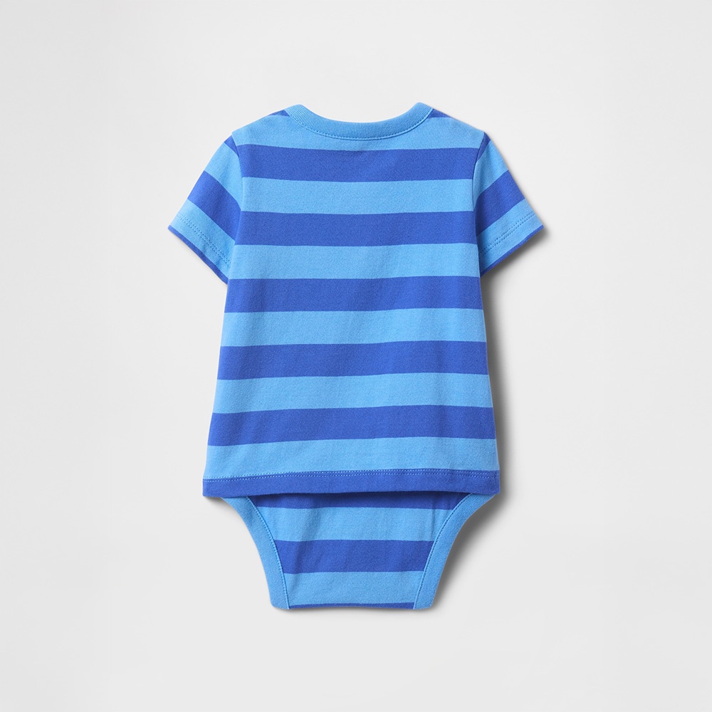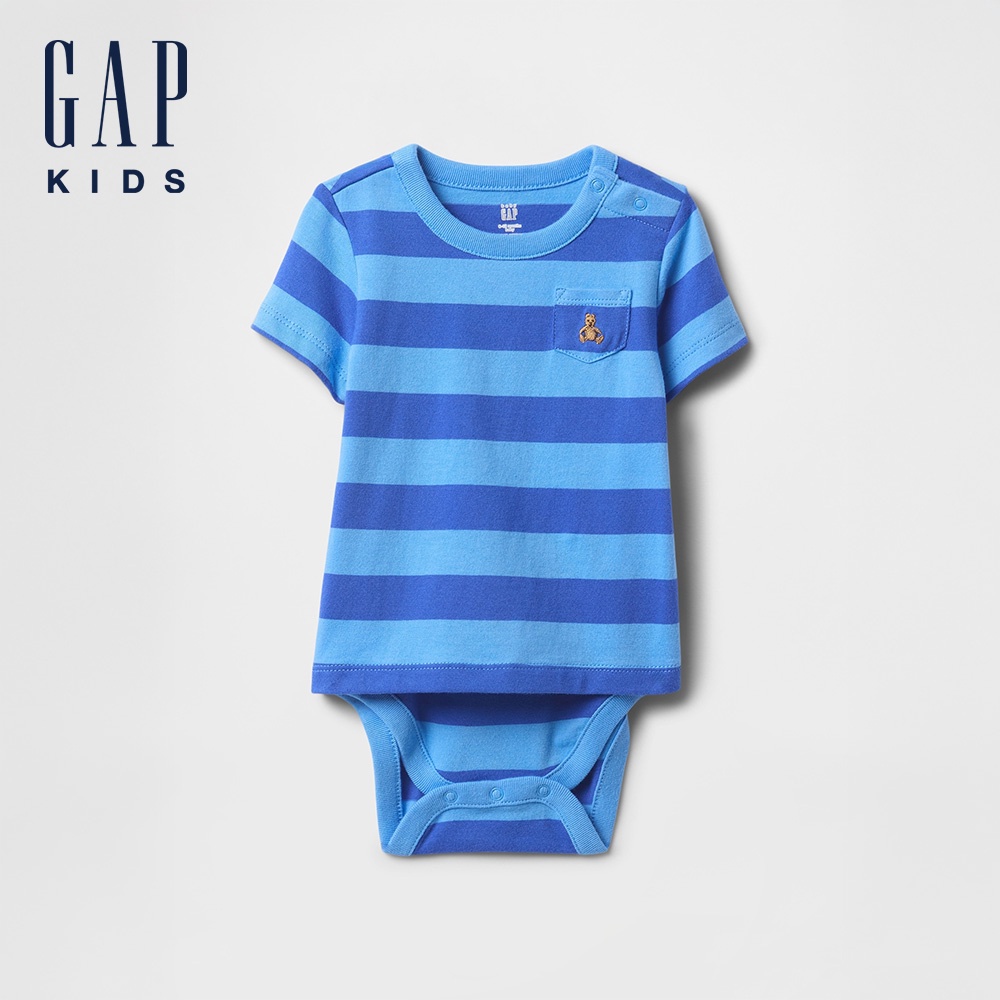 Gap 嬰兒裝 小熊刺繡圓領短袖包屁衣-藍色(723332)52cm(0-3月)|59cm(3-6月)|73cm(6-12月)|80cm(12-18月)|90cm(18-24月)Bodysuits & JumpsuitsGap官方旗艦店