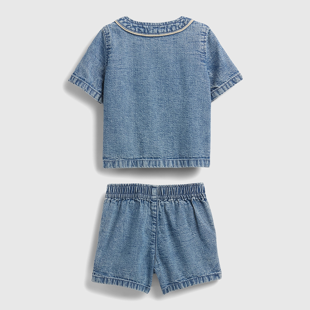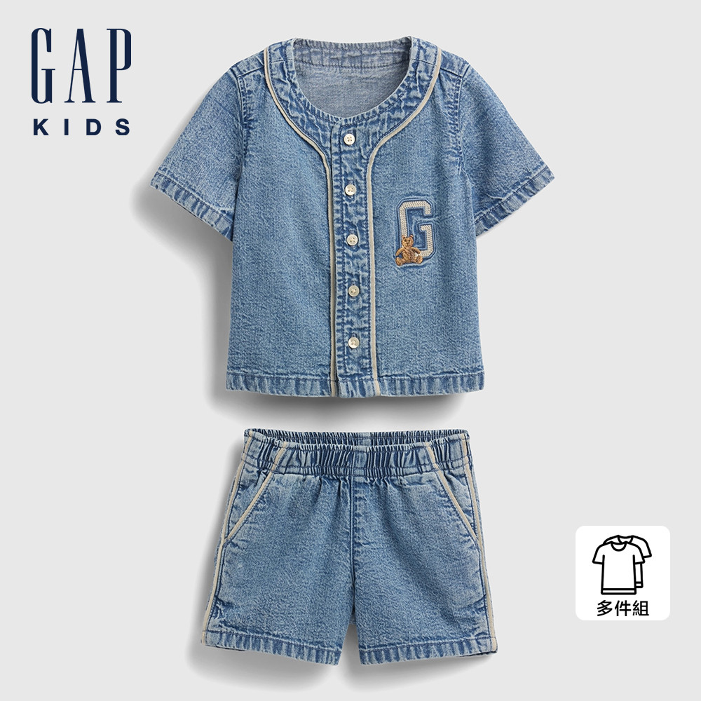 Gap 嬰兒裝 Logo純棉小熊刺繡圓領短袖短褲家居套裝-中度水洗(781011)59cm(3-6月)|73cm(6-12月)|80cm(12-18月)|90cm(18-24月)SetsGap官方旗艦店