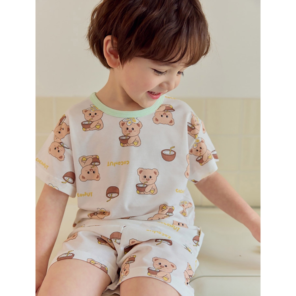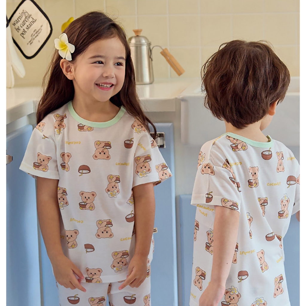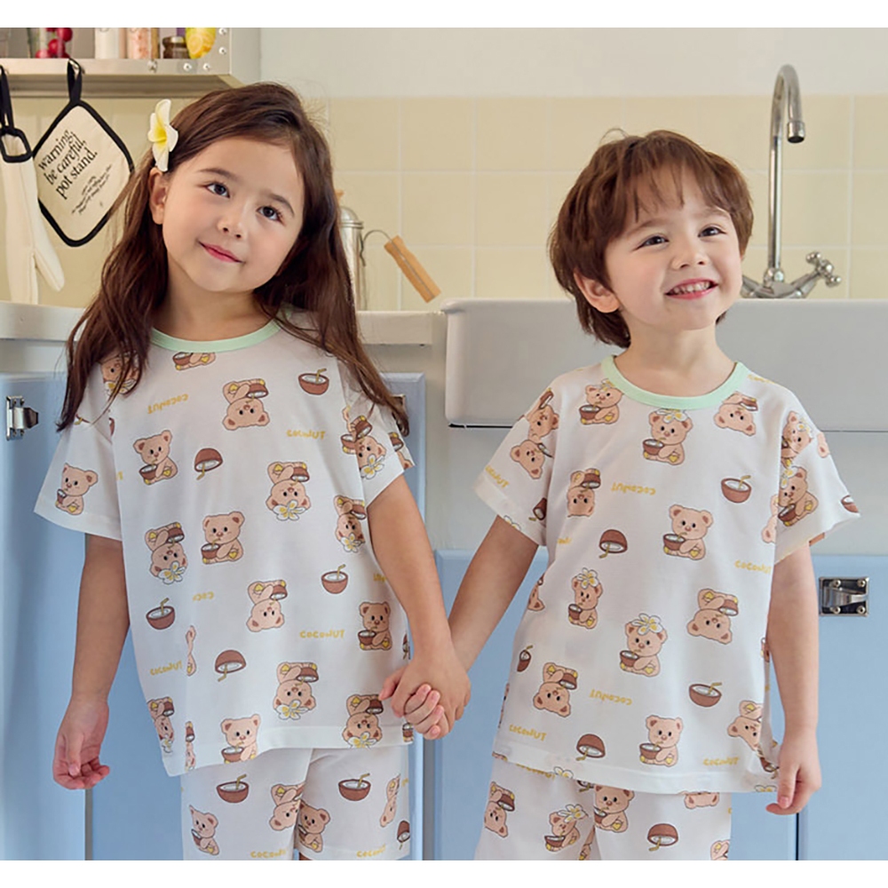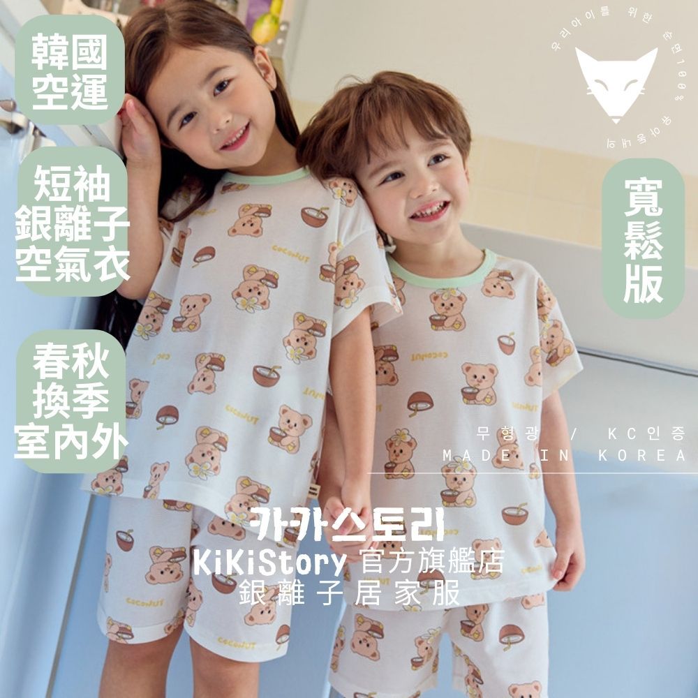 【kikistory韓國空氣衣】熊熊夏日椰子-[寬鬆]銀離子空氣衣短袖韓國童裝|官方旗艦館 [K64005]110|120|130|140|090|100Suits & SetsKiKiStory韓國空氣衣