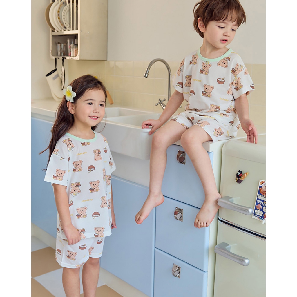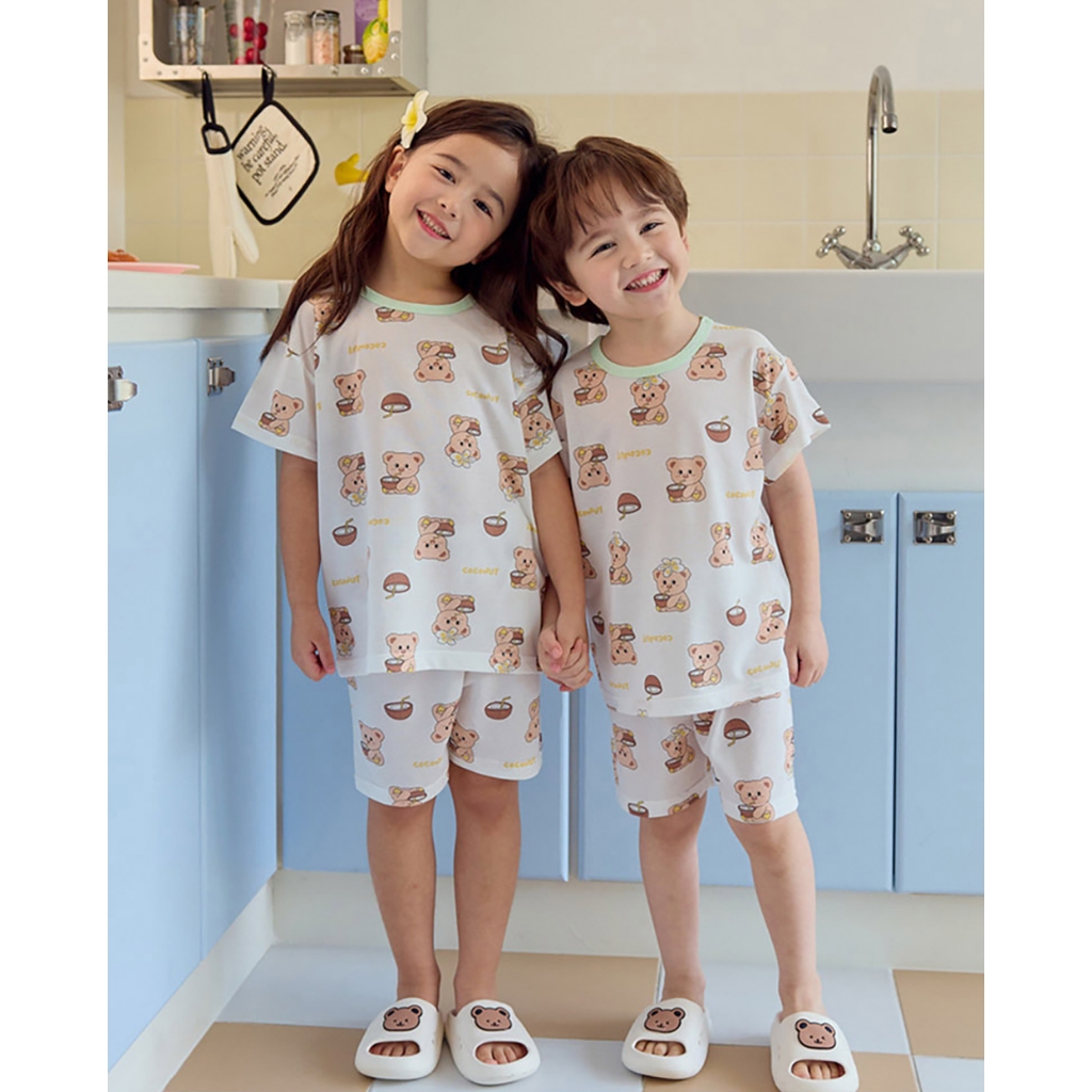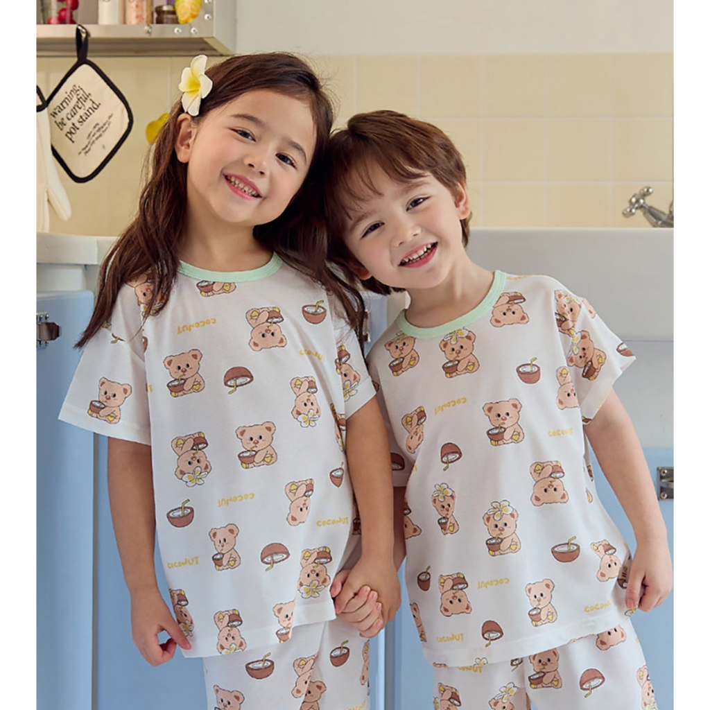 【kikistory韓國空氣衣】熊熊夏日椰子-[寬鬆]銀離子空氣衣短袖韓國童裝|官方旗艦館 [K64005]110|120|130|140|090|100Suits & SetsKiKiStory韓國空氣衣