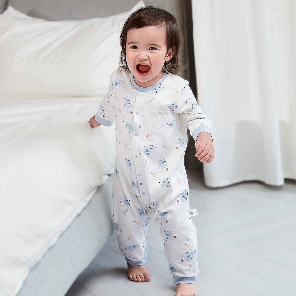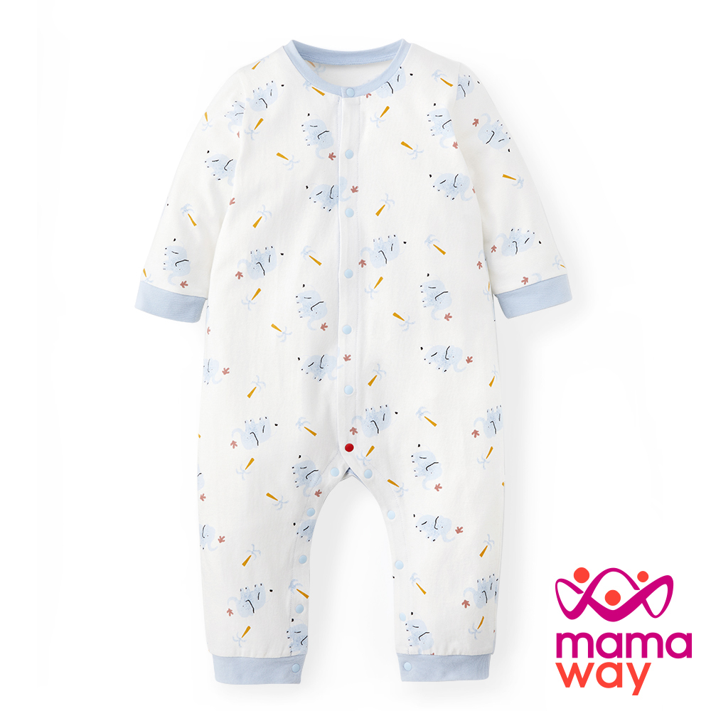 【Mamaway媽媽餵】BABY長袖連身衣-大象淺藍,70|淺藍,80|淺藍,90Bodysuits & JumpsuitsMamaway 媽媽餵 母嬰品牌領導者