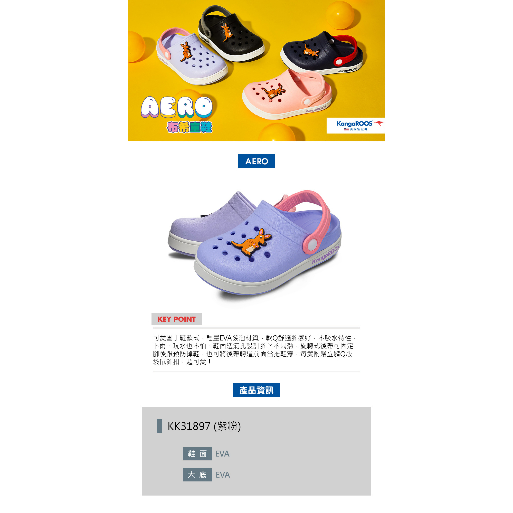 【KangaROOS 美國袋鼠鞋】童鞋 AERO布希鞋 旋轉式後帶可固定 輕量 休閒涼鞋 (紫粉-KK31897)19cm|20cm|15cm|16cm|17cm|18cmSandalsKangaROOS 美國袋鼠鞋 官方旗艦店
