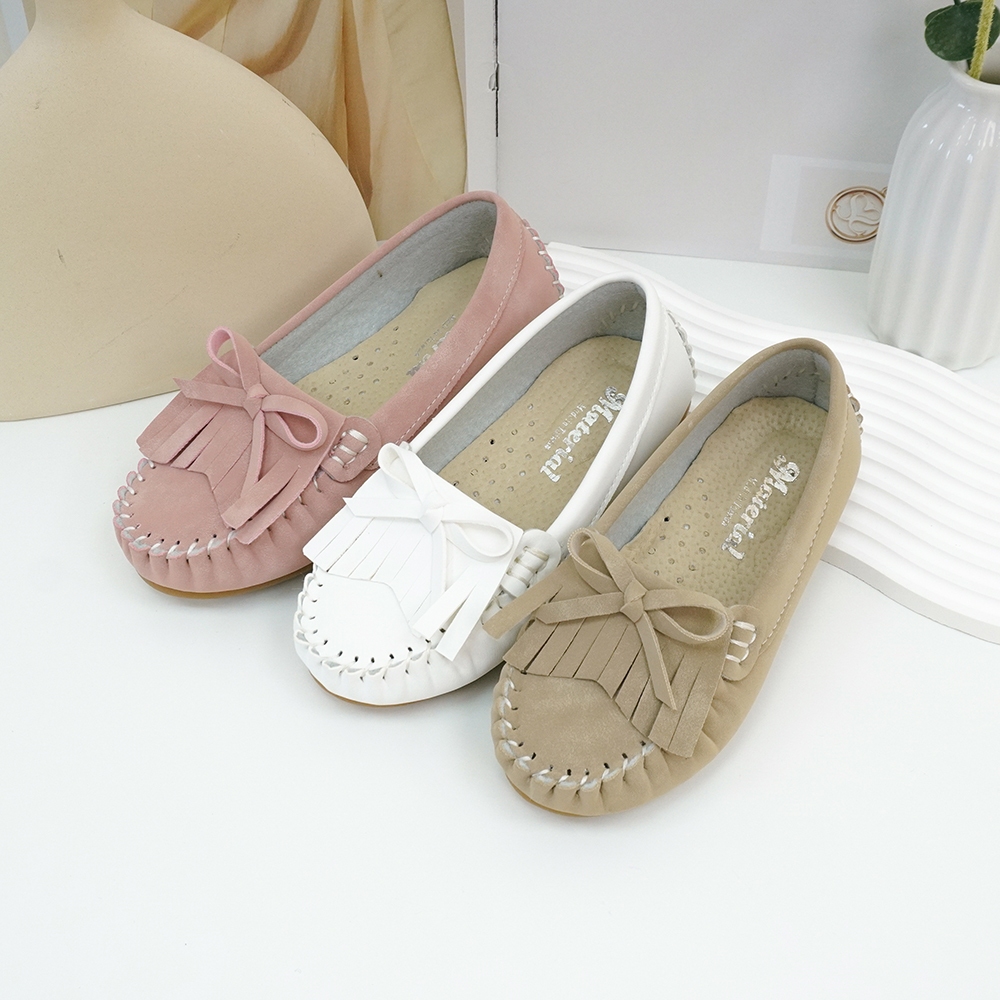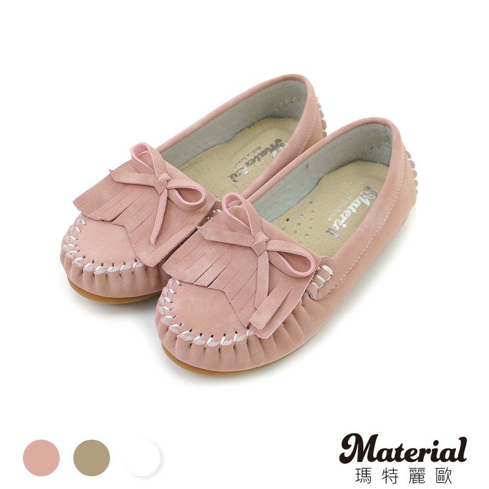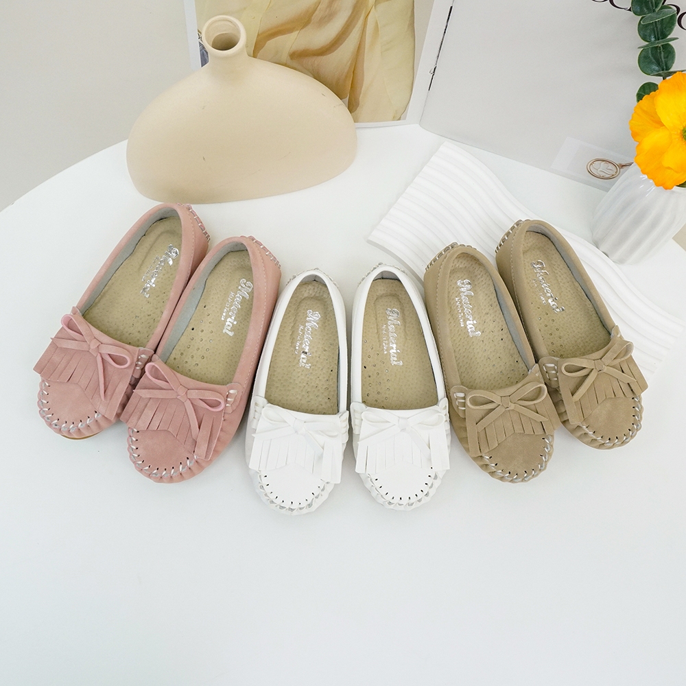 Material瑪特麗歐 TB10010 【18-22】 童鞋 真皮鞋墊 MIT流蘇百搭豆豆鞋粉色18|粉色19|粉色20|粉色21|粉色22|白色18|白色19|白色20|白色21|白色22|卡其18|卡其19|卡其20|卡其21|卡其22FlatsMaterial 瑪特麗歐 台灣製女鞋品牌 旗艦店