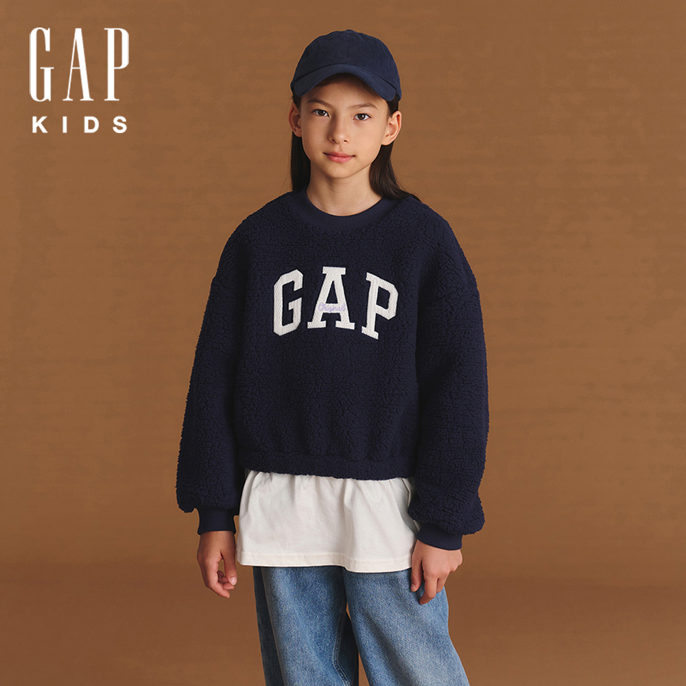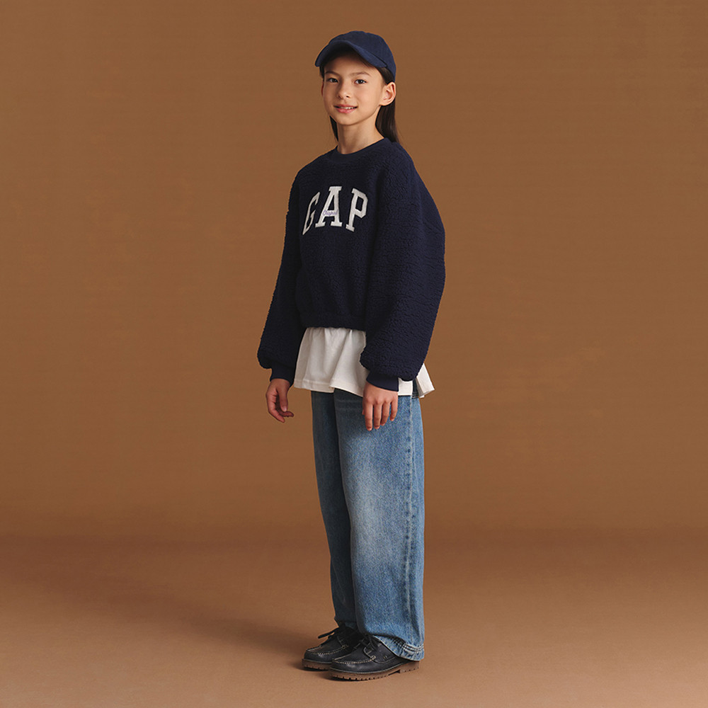 Gap 女童裝 Logo刺繡圓領長袖上衣-海軍藍(606603)XXS|XS|S|M|L|XLTopsGap官方旗艦店