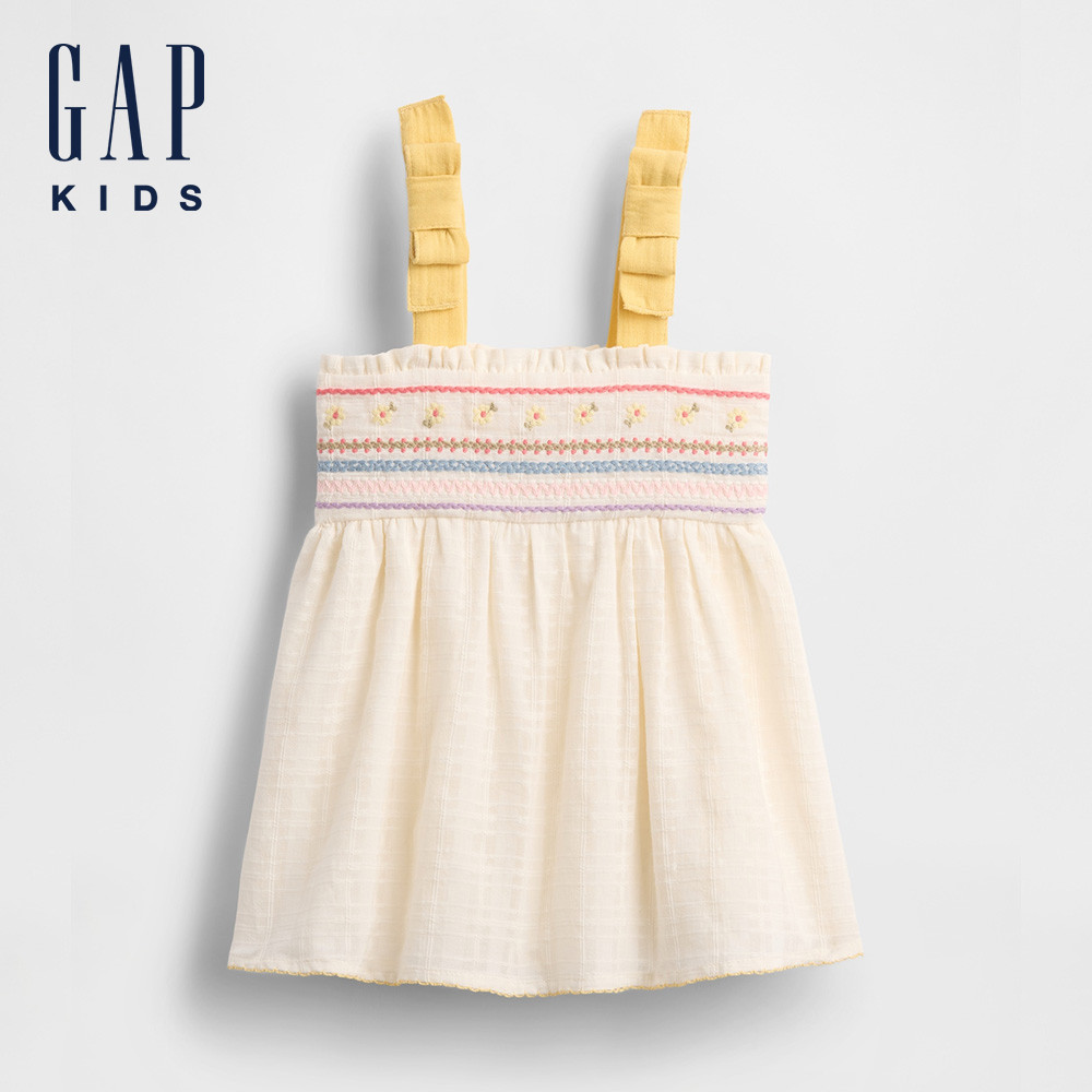 Gap 嬰兒裝 純棉刺繡方領吊帶洋裝-象牙白(796829)59cm(3-6月)|73cm(6-12月)|80cm(12-18月)|90cm(18-24月)DressesGap官方旗艦店