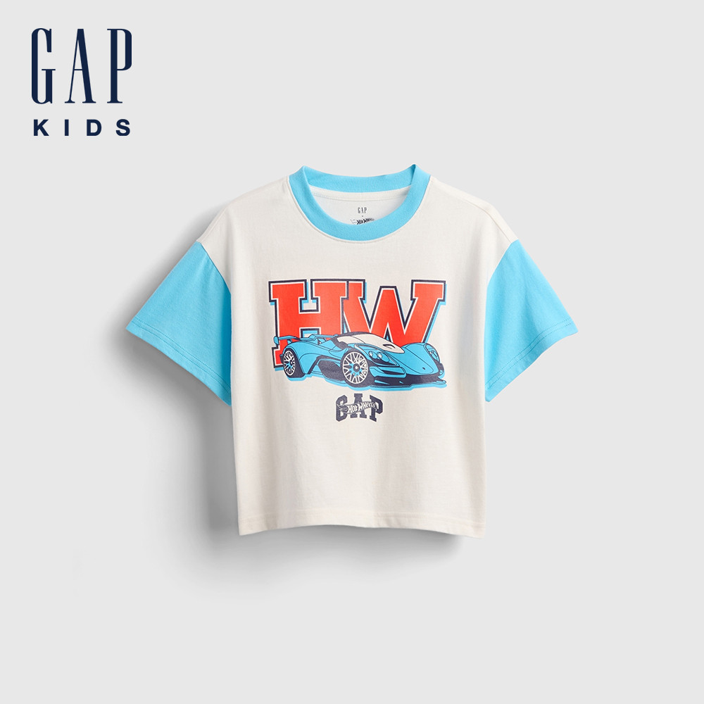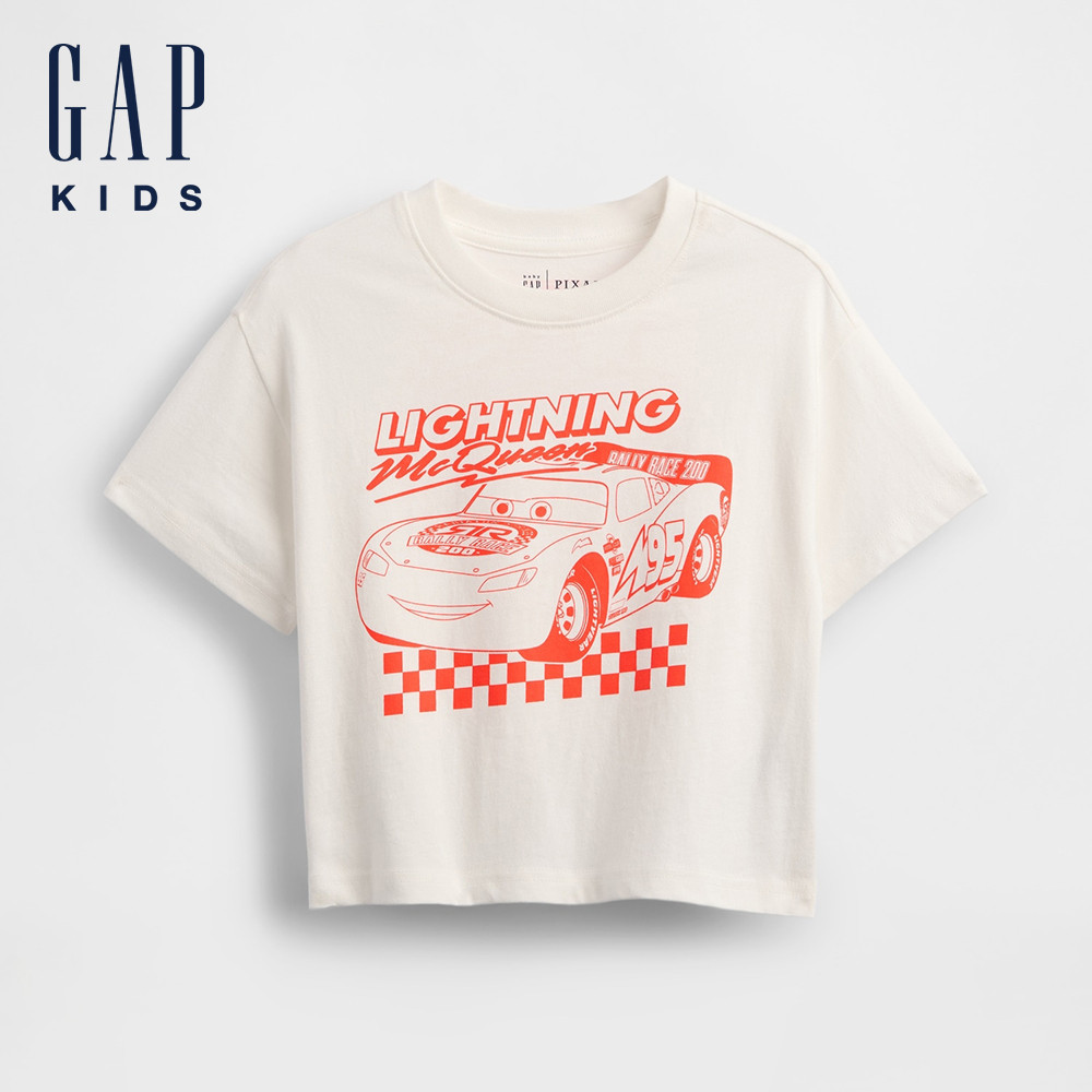 Gap 男幼童裝 Gap x Cars汽車總動員聯名 Logo純棉印花圓領短袖T恤-白色(791145)90cm(1-2歲)|100cm(2-3歲)|110cm(4-5歲)|110cm(5歲)TopsGap官方旗艦店