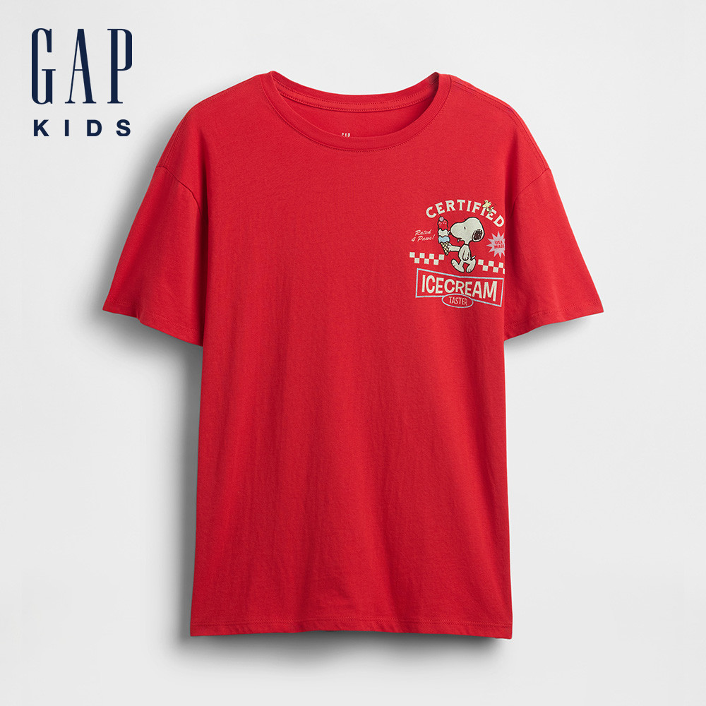 Gap 女童裝 Gap x Snoopy史努比聯名 印花圓領短袖T恤-紅色(780477)XS|S|M|L|XL|XXLTopsGap官方旗艦店