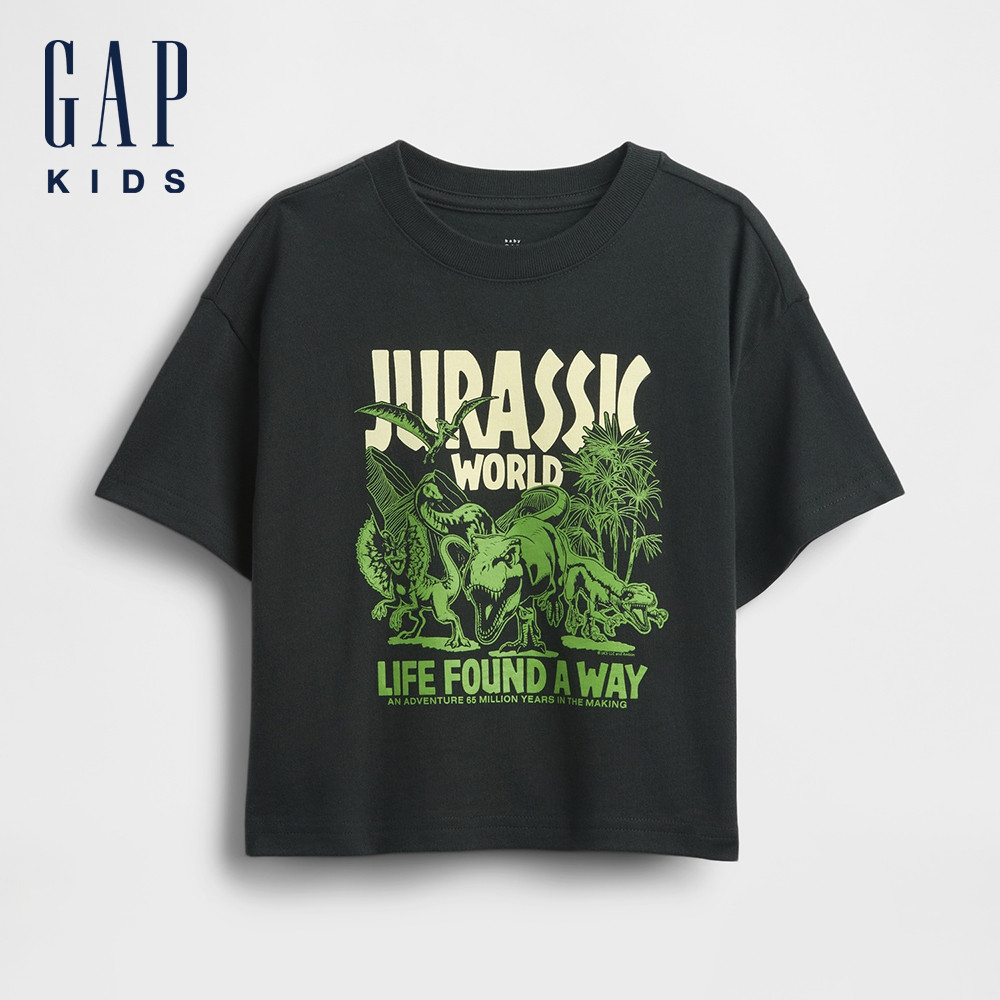 Gap 男幼童裝 純棉恐龍印花圓領短袖T恤-黑色(780788)110cm(4-5歲)|110cm(5歲)|90cm(1-2歲)|100cm(2-3歲)TopsGap官方旗艦店