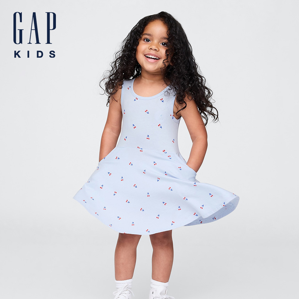 Gap 女幼童裝 純棉小熊刺繡印花圓領無袖洋裝-淺藍色(778350)90cm(1-2歲)|100cm(2-3歲)|110cm(4-5歲)|110cm(5歲)DressesGap官方旗艦店