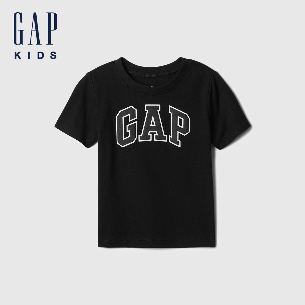 Gap 男幼童裝 Logo純棉印花圓領短袖T恤-黑色(609749)90cm(1-2歲)|100cm(2-3歲)|110cm(4-5歲)|110cm(5歲)TopsGap官方旗艦店