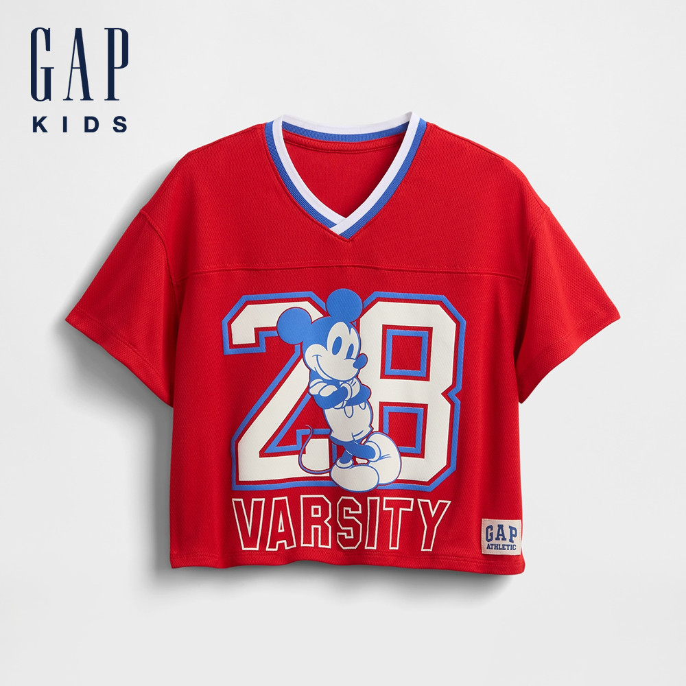 Gap 男幼童裝 印花V領短袖T恤-紅色(779235)100cm(2-3歲)|110cm(4-5歲)|110cm(5歲)|90cm(1-2歲)TopsGap官方旗艦店