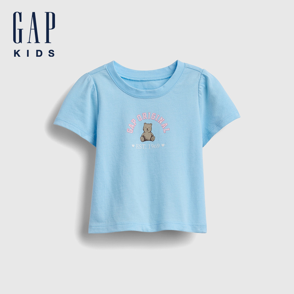 Gap 女幼童裝 Logo純棉小熊印花圓領短袖T恤-淺藍色(778402)90cm(1-2歲)|100cm(2-3歲)|110cm(4-5歲)|110cm(5歲)TopsGap官方旗艦店