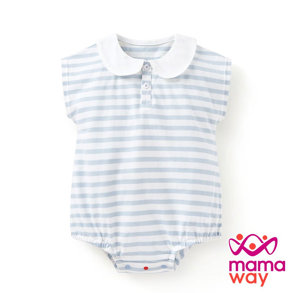 【Mamaway媽媽餵】BABY翻領橫紋寬鬆包屁衣淺藍,90|粉橘,90|咖啡,90|淺藍,70|淺藍,80|粉橘,70|粉橘,80|咖啡,70|咖啡,80Bodysuits & JumpsuitsMamaway 媽媽餵 母嬰品牌領導者