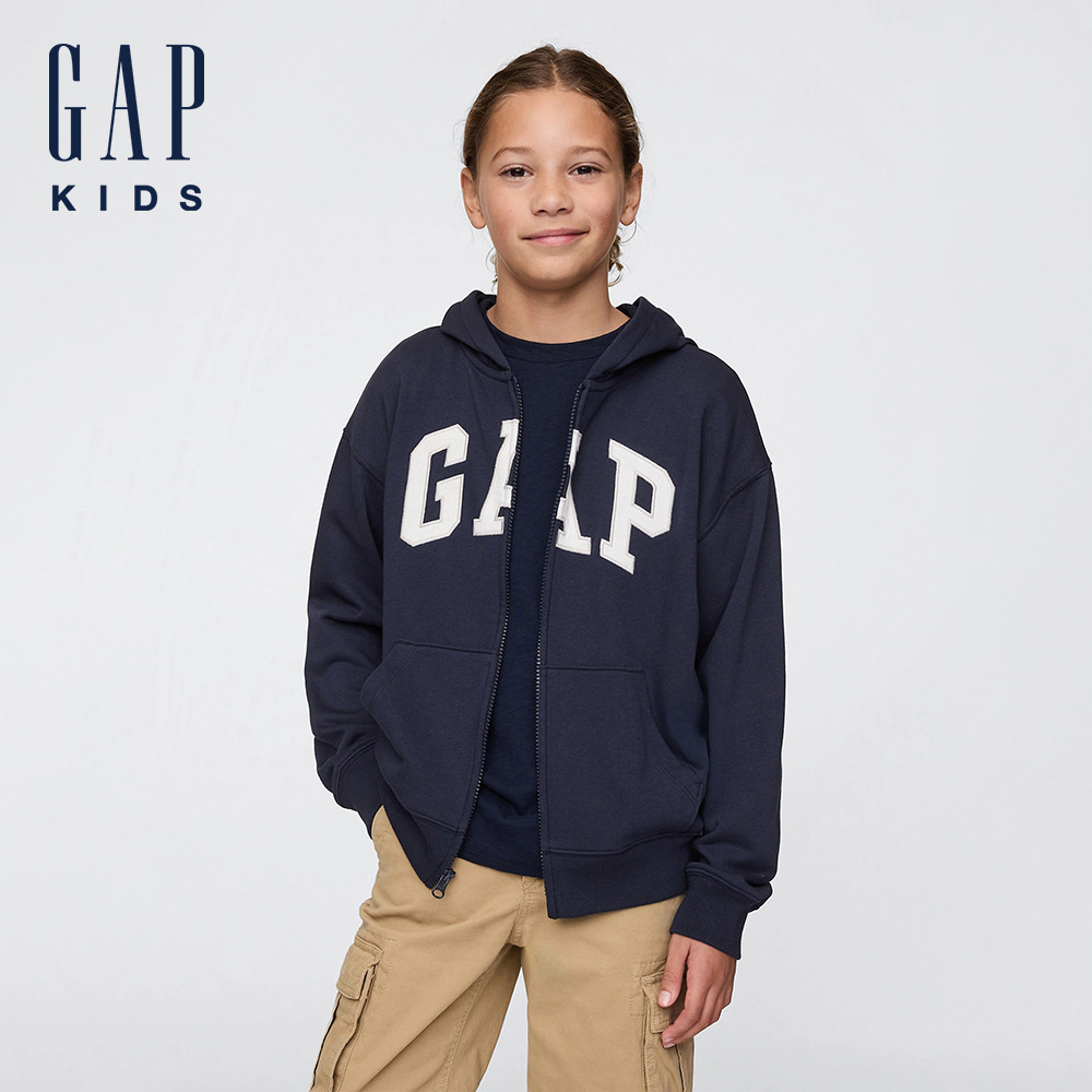 Gap 男童裝 Logo刺繡連帽外套-海軍藍(743966)M|L|XL|XXL|XS|SOuterwearGap官方旗艦店