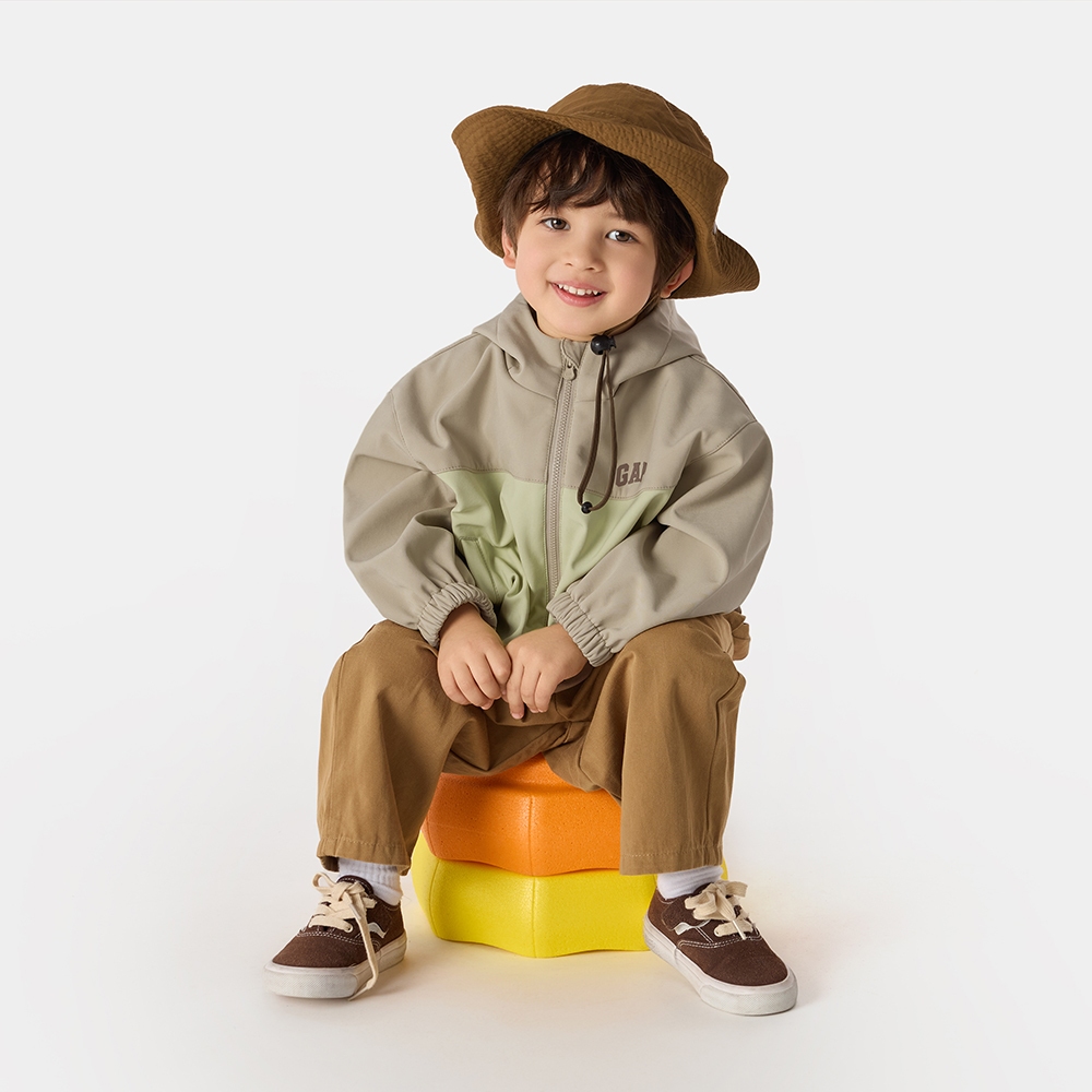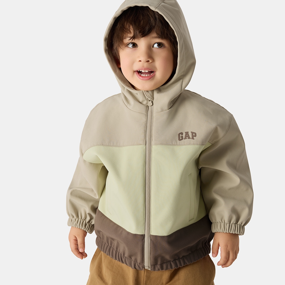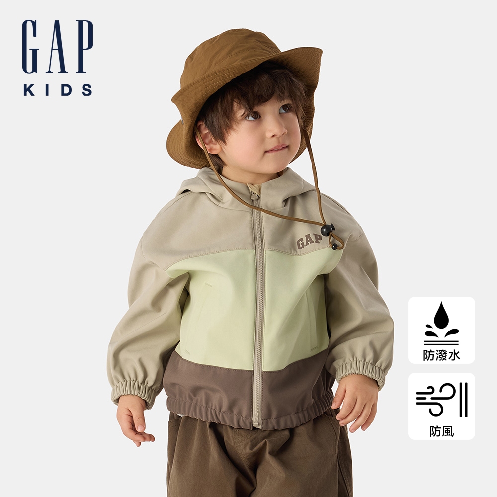 Gap 男幼童裝 Logo印花防風防潑連帽外套-卡其色(759387)90cm(1-2歲)|100cm(2-3歲)|110cm(4-5歲)Regular OuterwearGap官方旗艦店