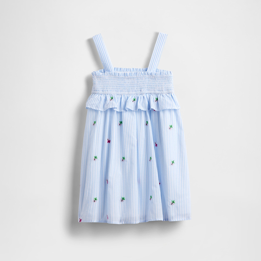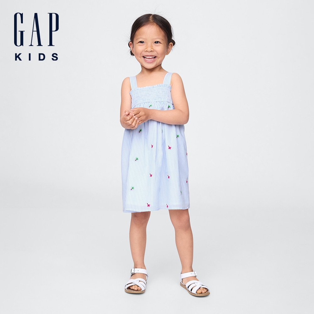 Gap 女幼童裝 純棉刺繡方領吊帶洋裝-藍色(785639)90cm(1-2歲)|100cm(2-3歲)|110cm(4-5歲)|110cm(5歲)DressesGap官方旗艦店