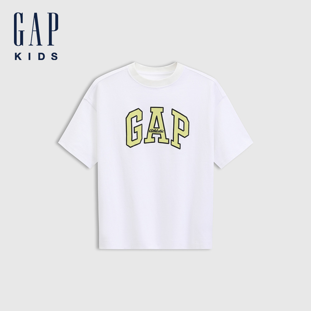 Gap 男童裝 Logo純棉印花圓領短袖T恤-白色(780335)XXL|XS|S|M|L|XLTopsGap官方旗艦店
