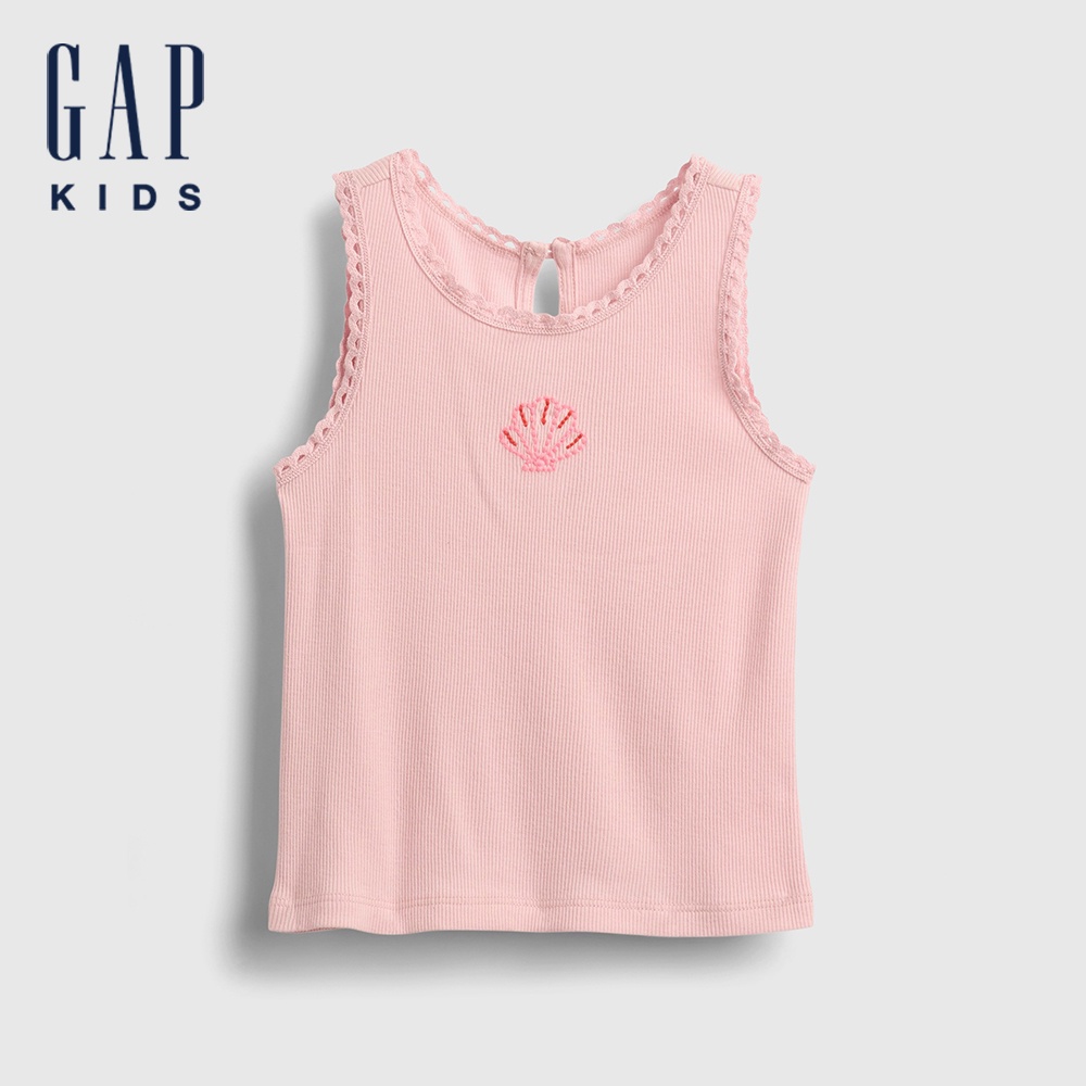 Gap 女童裝 純棉刺繡圓領針織背心-粉色(767507)90cm(1-2歲)|100cm(2-3歲)|110cm(4-5歲)|110cm(5歲)OuterwearGap官方旗艦店